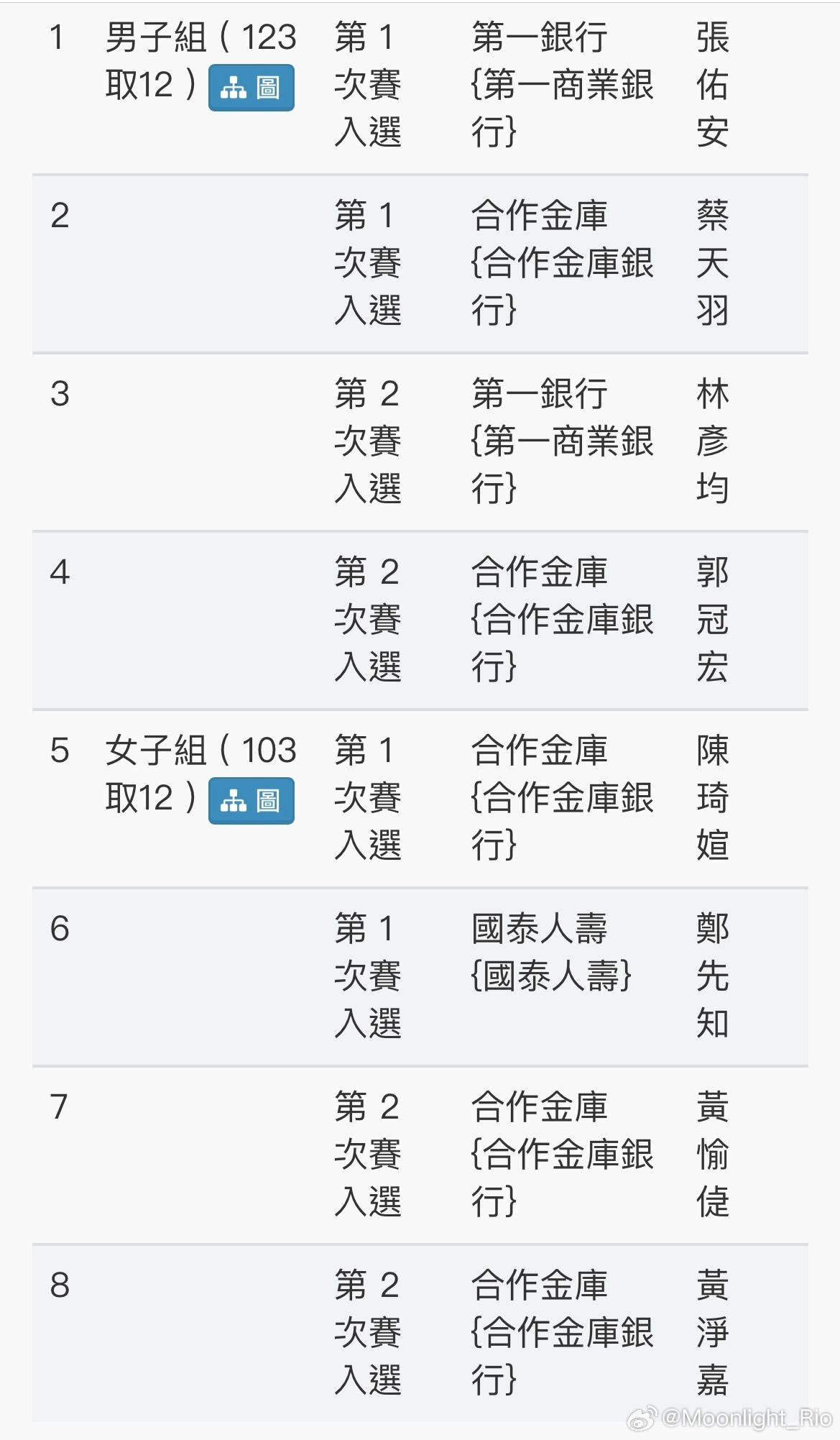男子组第2次赛入选:林彦均、郭冠宏