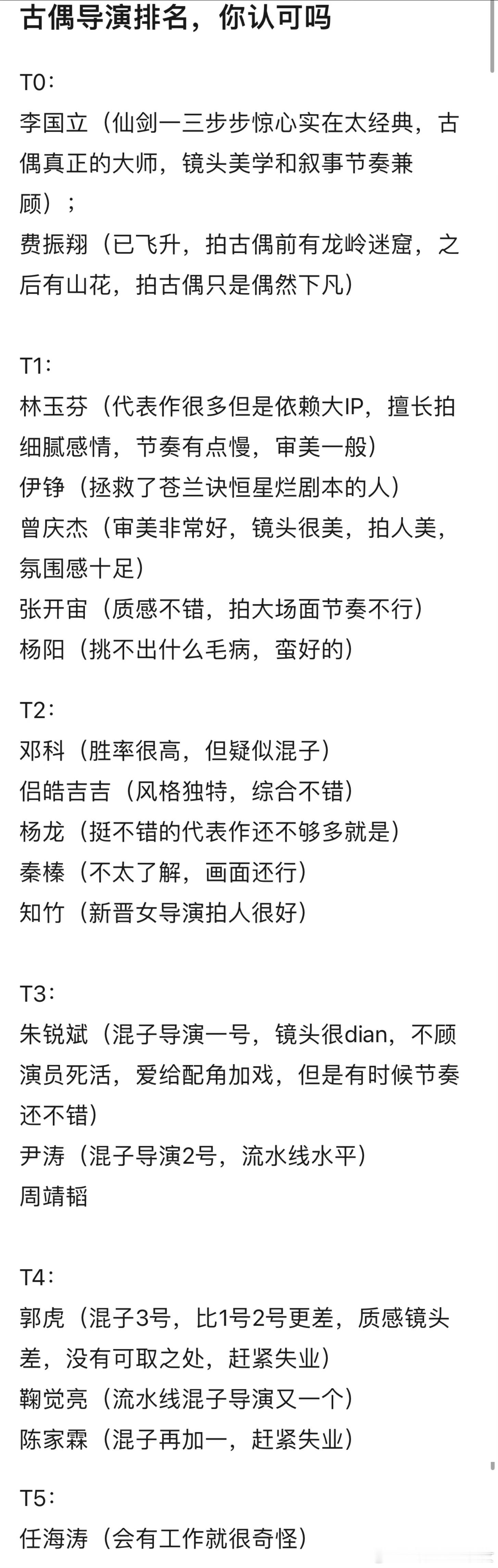 古偶导演排名,网友排名的,你认可吗