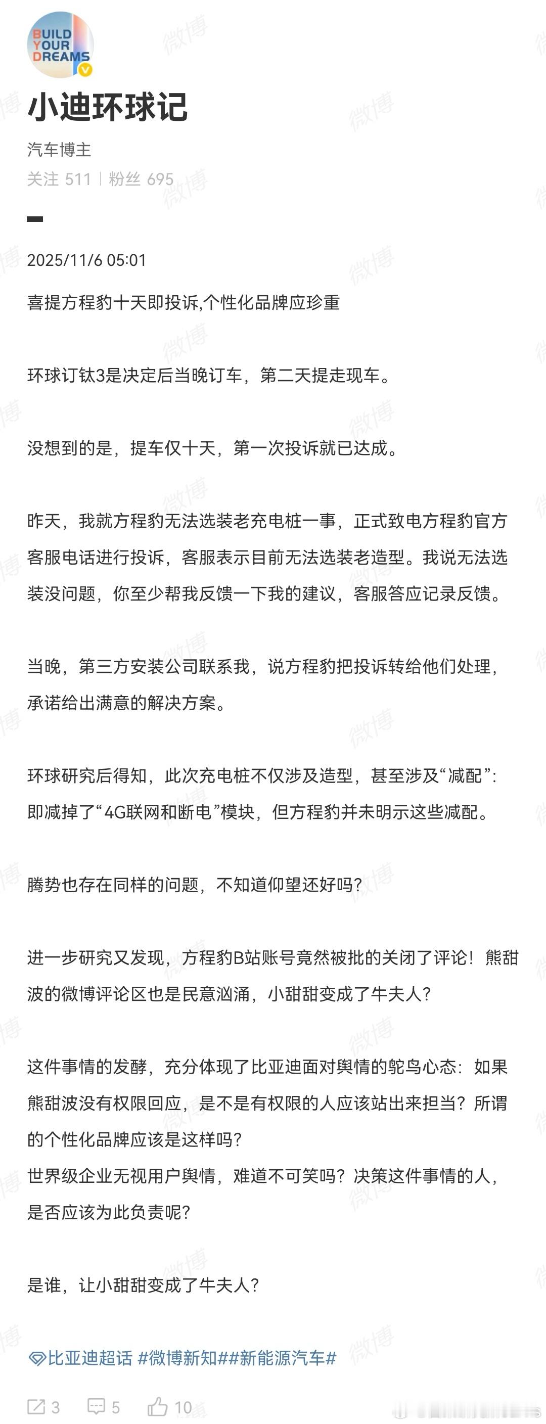 而且如果因为充电桩更换而买其他的,最后很多人的归宿,其实就是小黄鱼自己真金白银花钱买一个BYD充电桩。