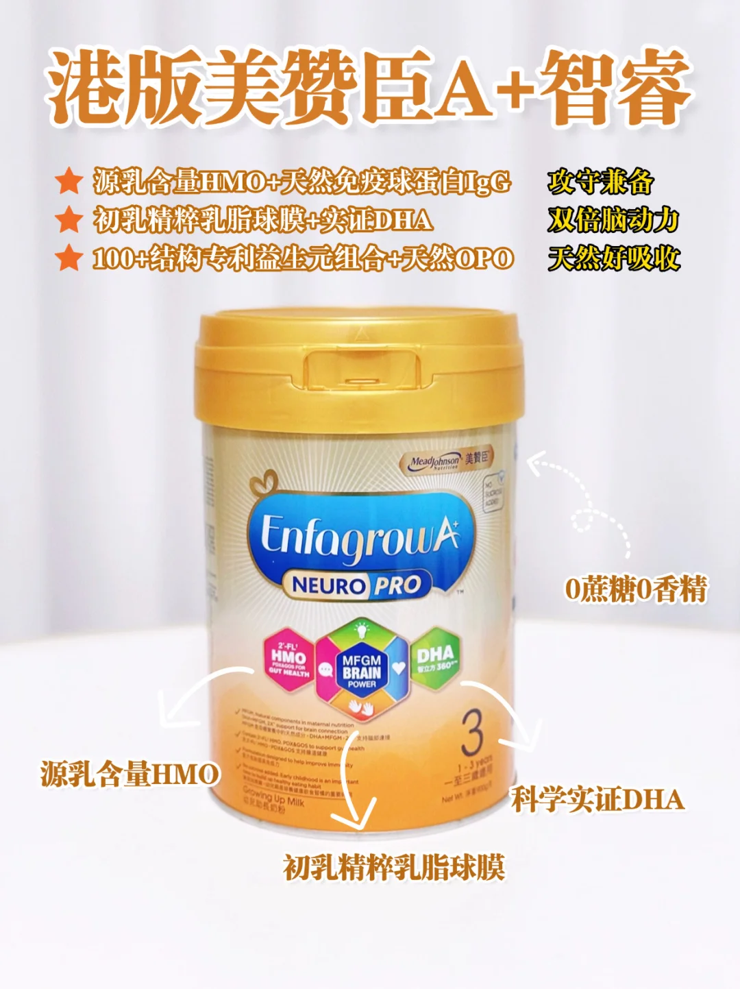 但光有技巧还不够,还得有充足“燃料”!大脑发育缺了关键营养可不行。作为食品专业出身的营养师,我向来是“成分党”,扒遍了热销的奶粉,总算让我找到了港版美赞臣 A+智睿这款能满足我对宝宝智体培养成长的双向需求!