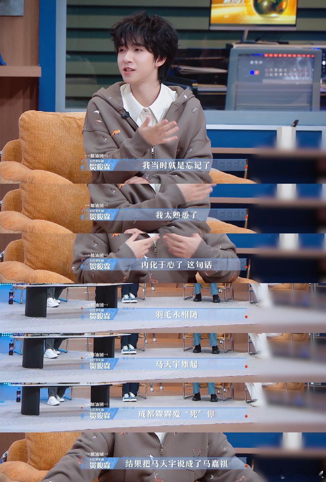 贺峻霖想的马天宇叫的马嘉祺贺峻霖回忆人生中的尴尬瞬间,说自己在直播里用夹子音复刻马天宇应援口号,把“马天宇雄起”喊成了“马嘉祺雄起!成都霖霖爱你”[允悲]