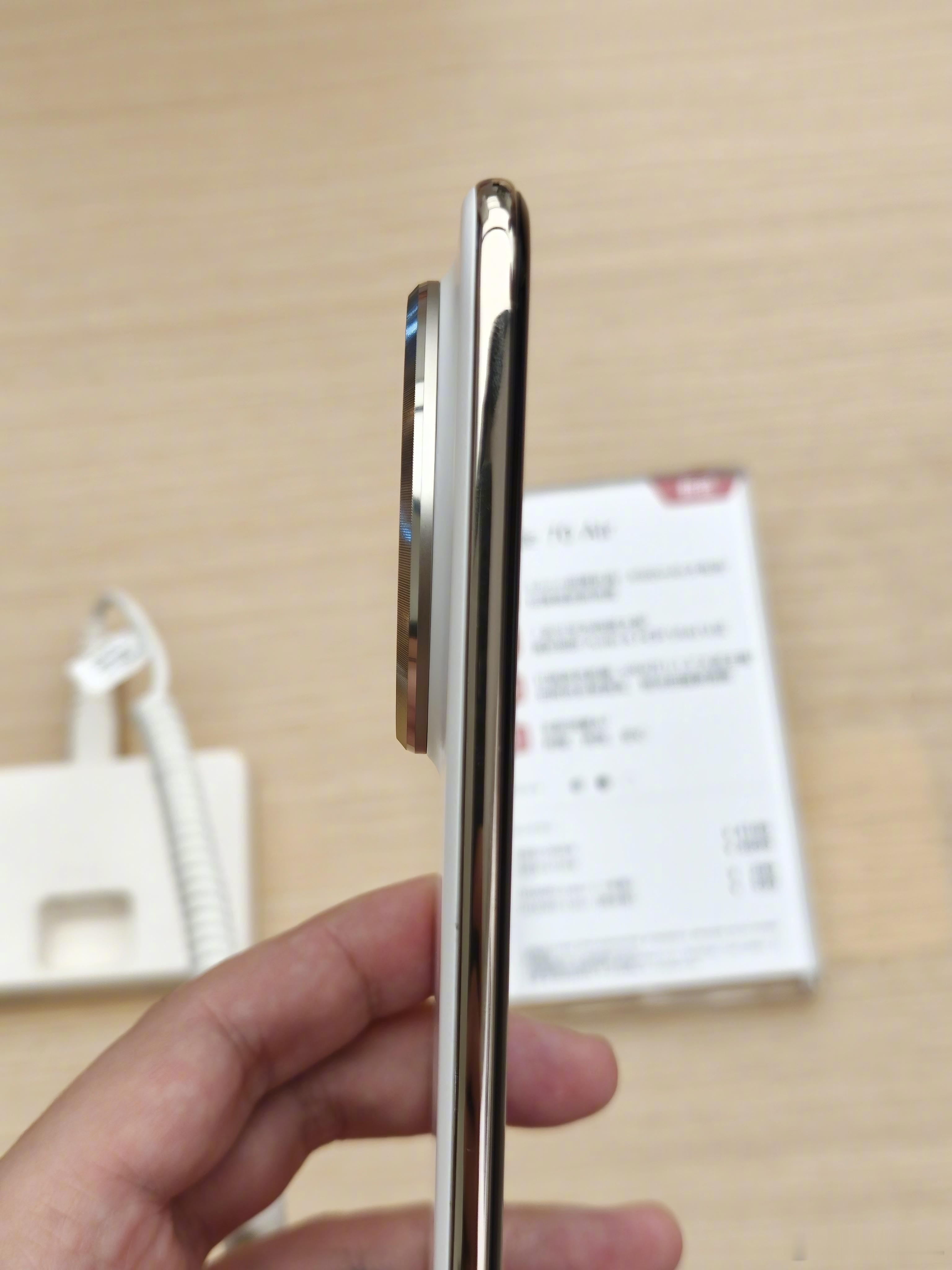 屏幕当然还是那种微曲玻璃设计,后置摄像头模组突起也能接受,跟 iPhone 17 相比也还是要薄了不少。侧面指纹,边框没有天线注塑条,但整体握着还是感觉挺扎实的,质感比想象中好些[并不简单]。