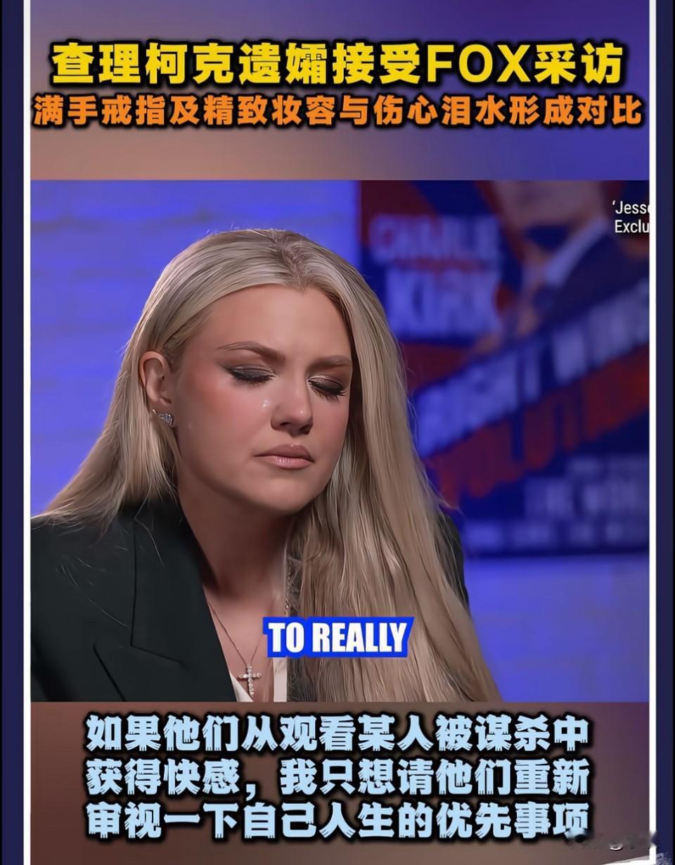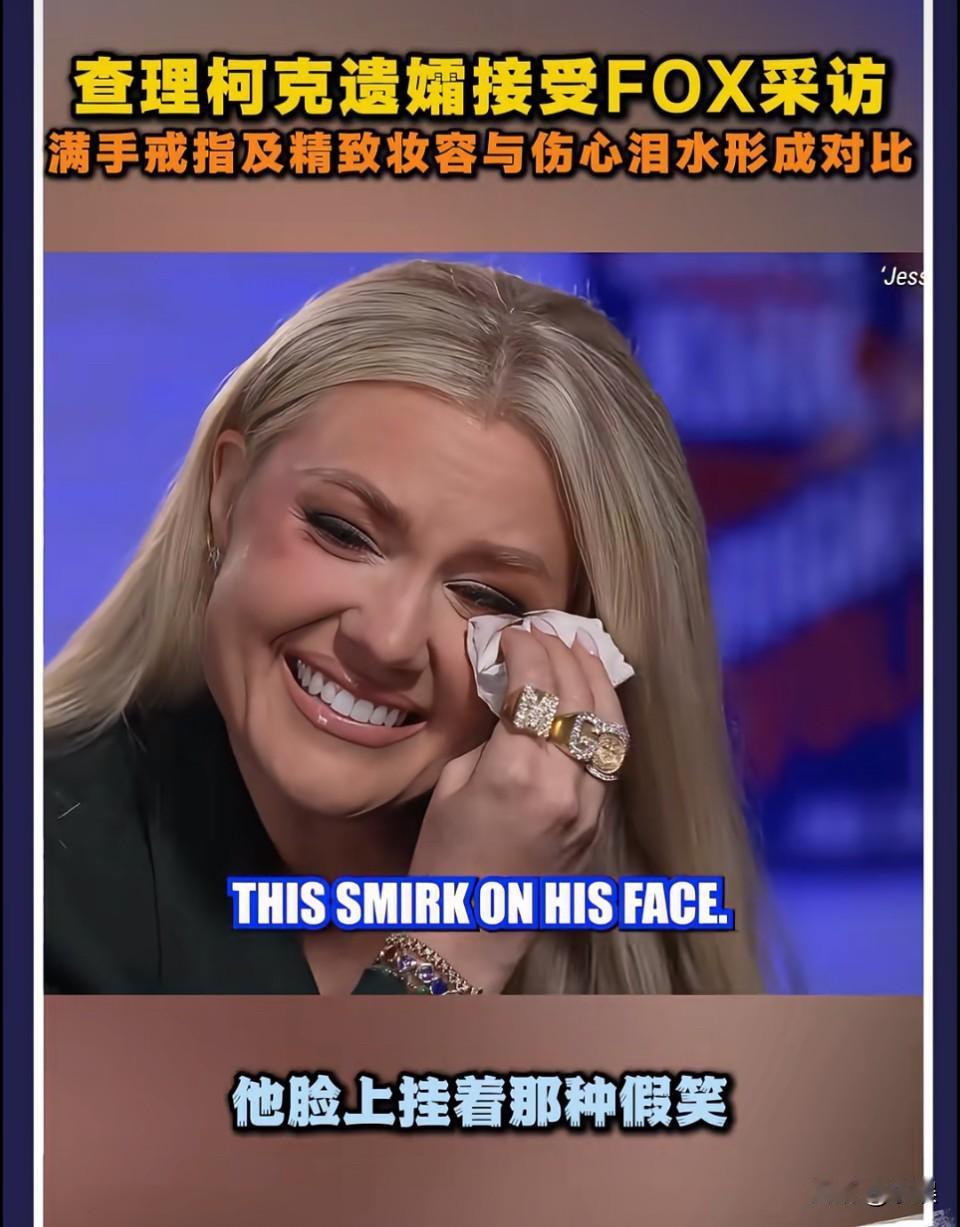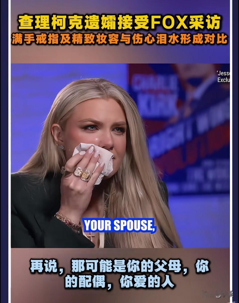 不知道她内心是真悲伤还是假悲伤,但是她讲话是真的很有技巧,很有演绎性的,谁懂?![what] 个人感觉她擦眼泪动作、她的笑、她说话声音的高低,无不充斥着表演痕迹…[what] 满手的戒指,也许我们不知那些戒指的来历和背后的意义,有可能是他丈夫的戒指和学校的毕业戒指呢?表演悲伤 失去亲人的痛只有经历过才懂