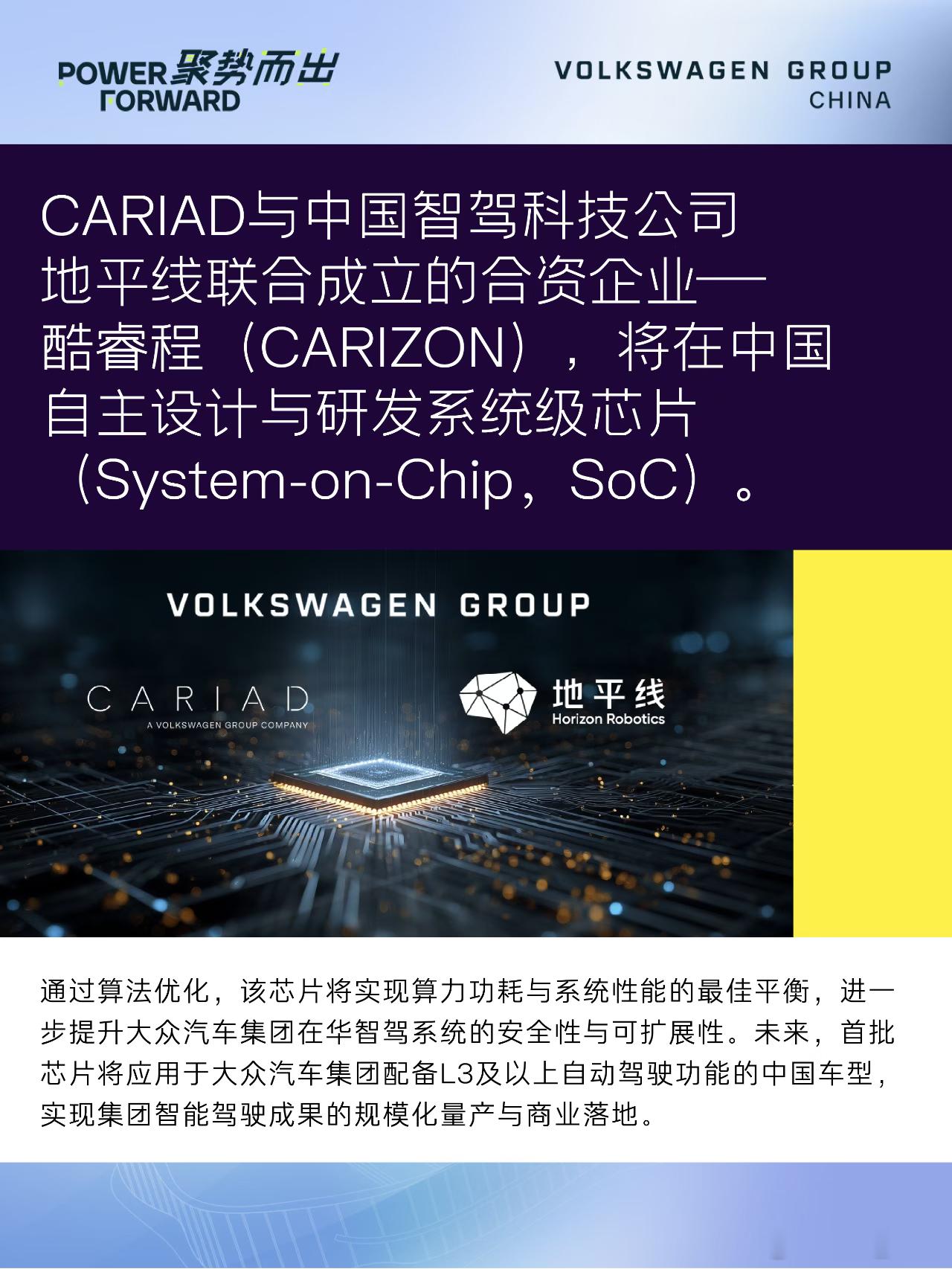 大众除了定点小鹏图灵AI芯片之外,也要和地平线一起开发自研智驾芯片。