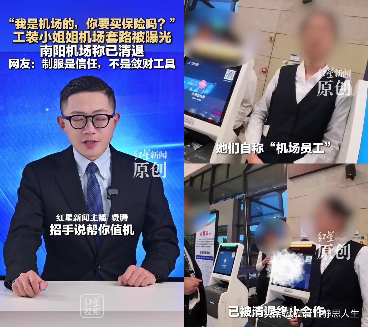 有没有人在机场被穿工装的自己人套路过? 南阳机场那个穿工装的小姐姐,凑过来帮你值机,开口就说“我是自助机部门的,买份保险吧”! 这套路被曝光后,机场说已经清退她了。 大家都炸开了锅, 有人说“银行里更常见!穿制服的‘理财经理’,说行里的活动,实则卖保险”; 也有人说“机场能不知道?就是装糊涂”; 还有人直接点破:“我们信的是工装=靠谱,他们钻的是靠谱=好骗!” 对啊!制服是机场给我们的安心符,不是用来敛财的伪装衣! 就像大家说的,制服是信任,不是敛财工具! 你们遇到过这种穿工装的套路吗?是机场的保险?银行的理财?还是其他地方? 大家怎么看?