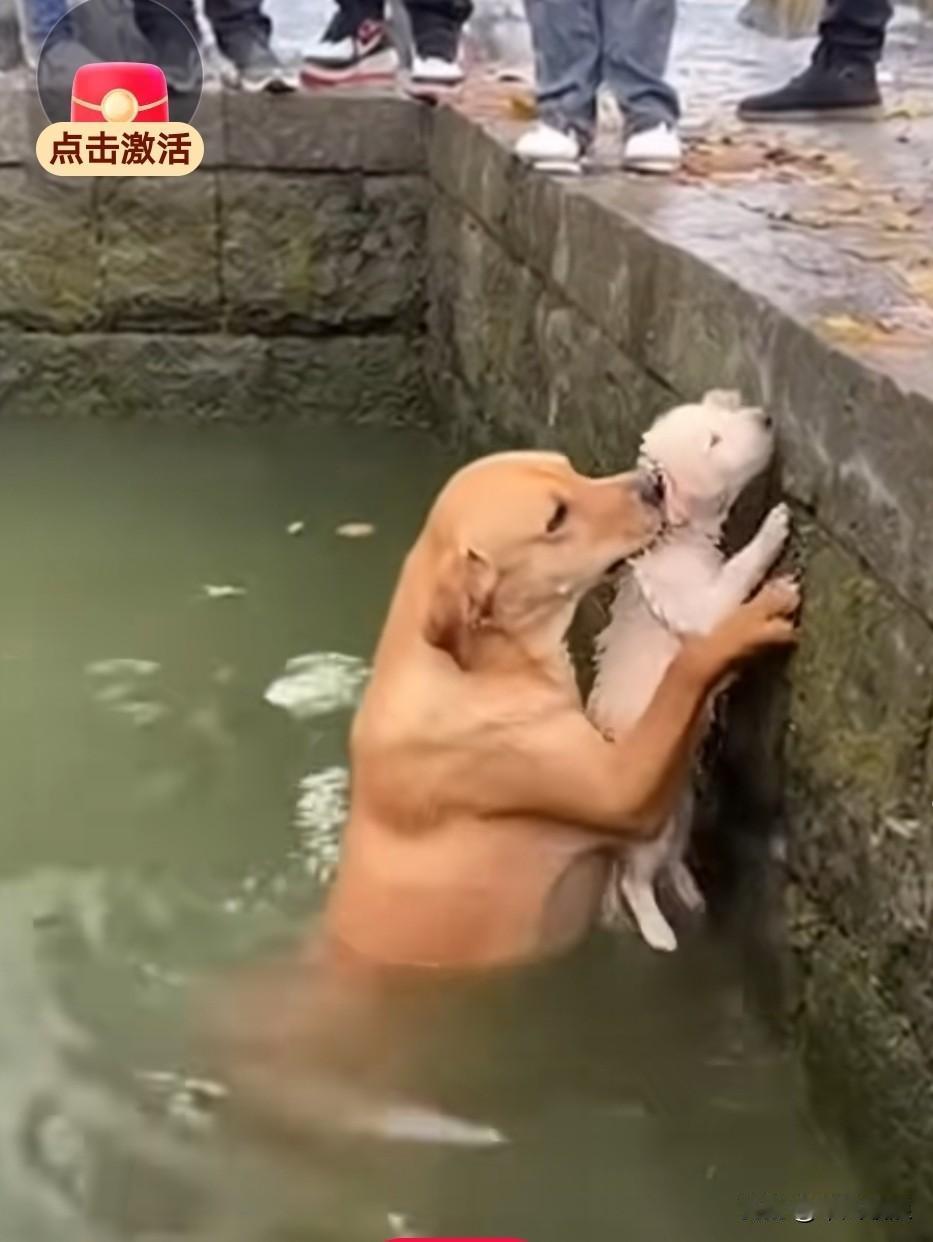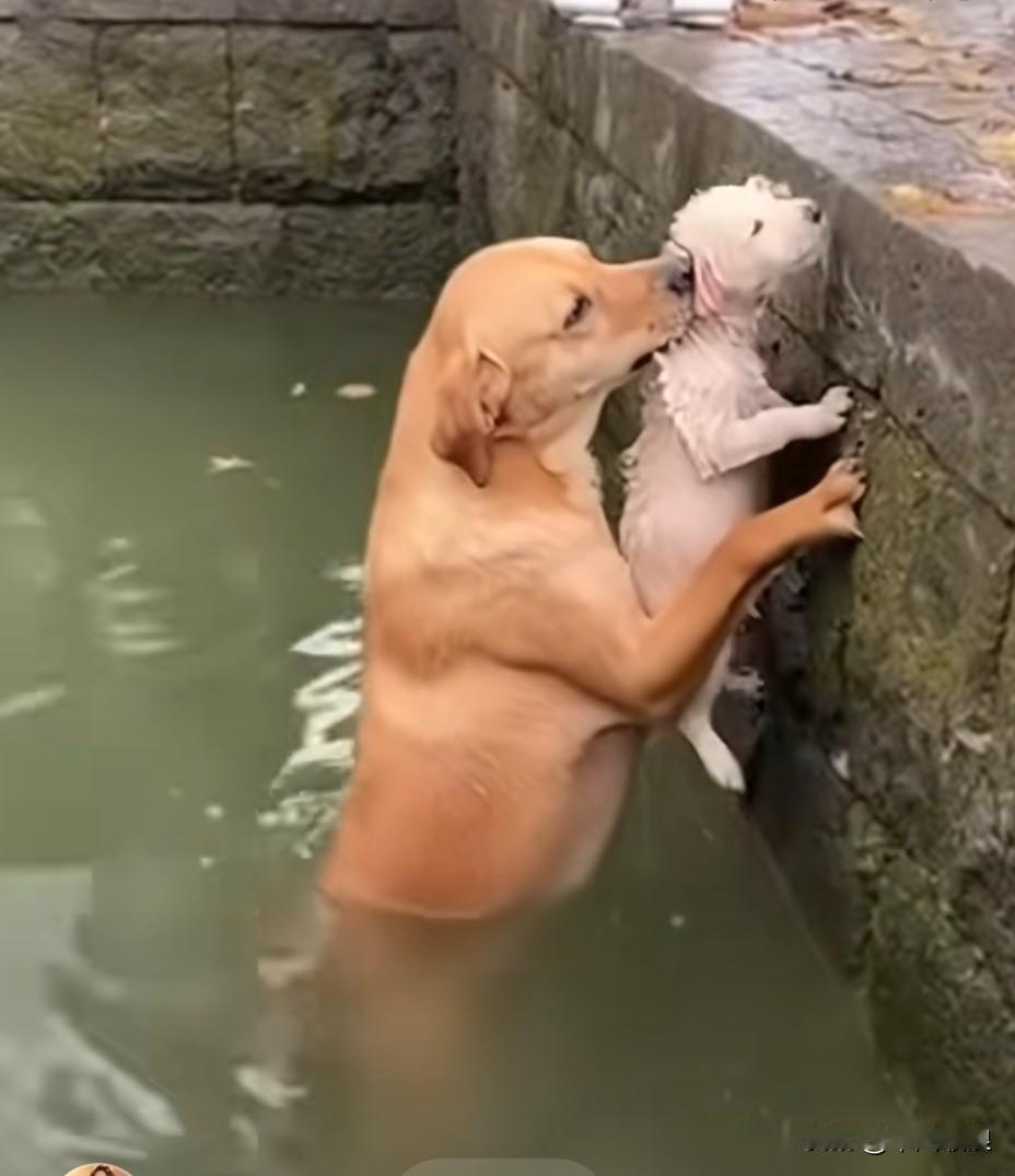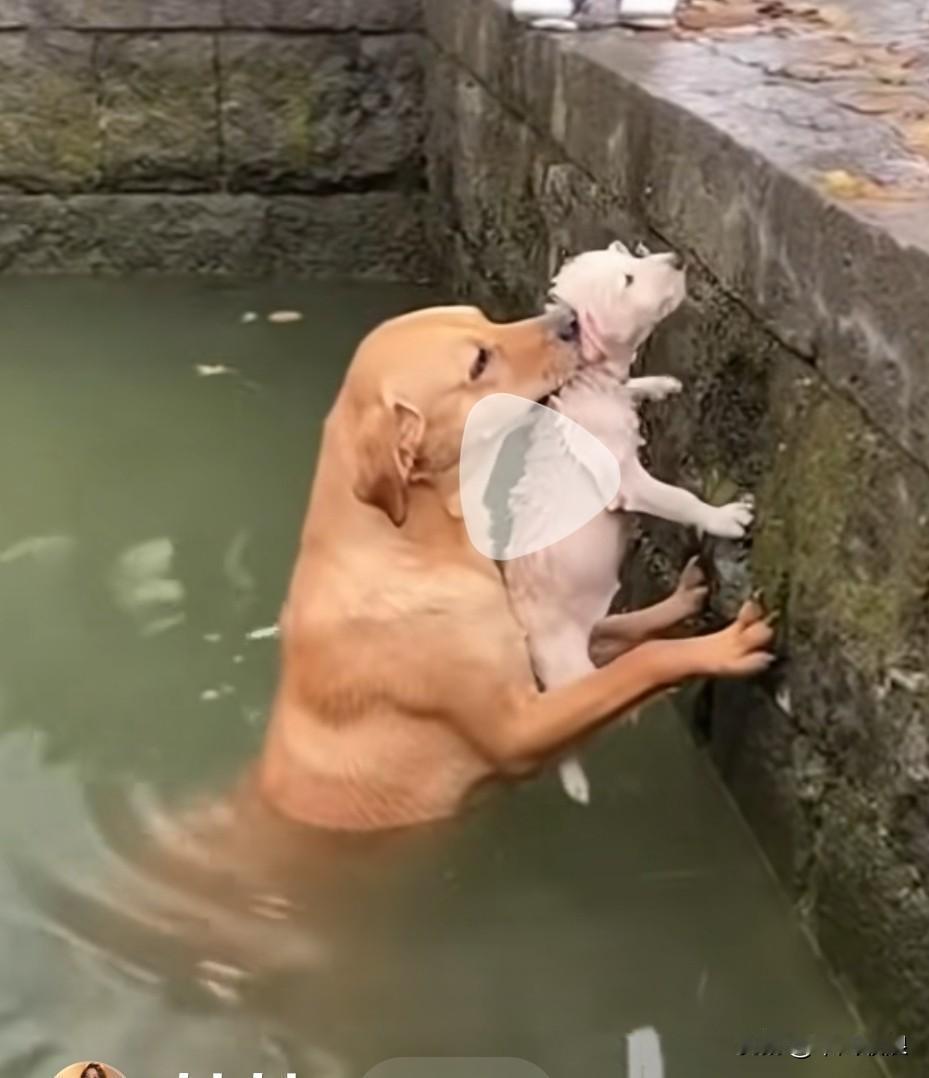 小狗不慎坠入池塘,幸好狗妈妈就在身旁。它毫不犹豫纵身跳下,死死咬住小狗,拼尽全力往岸上托举。最终,小狗成功躲过一劫。狗妈妈救子 水中小狗