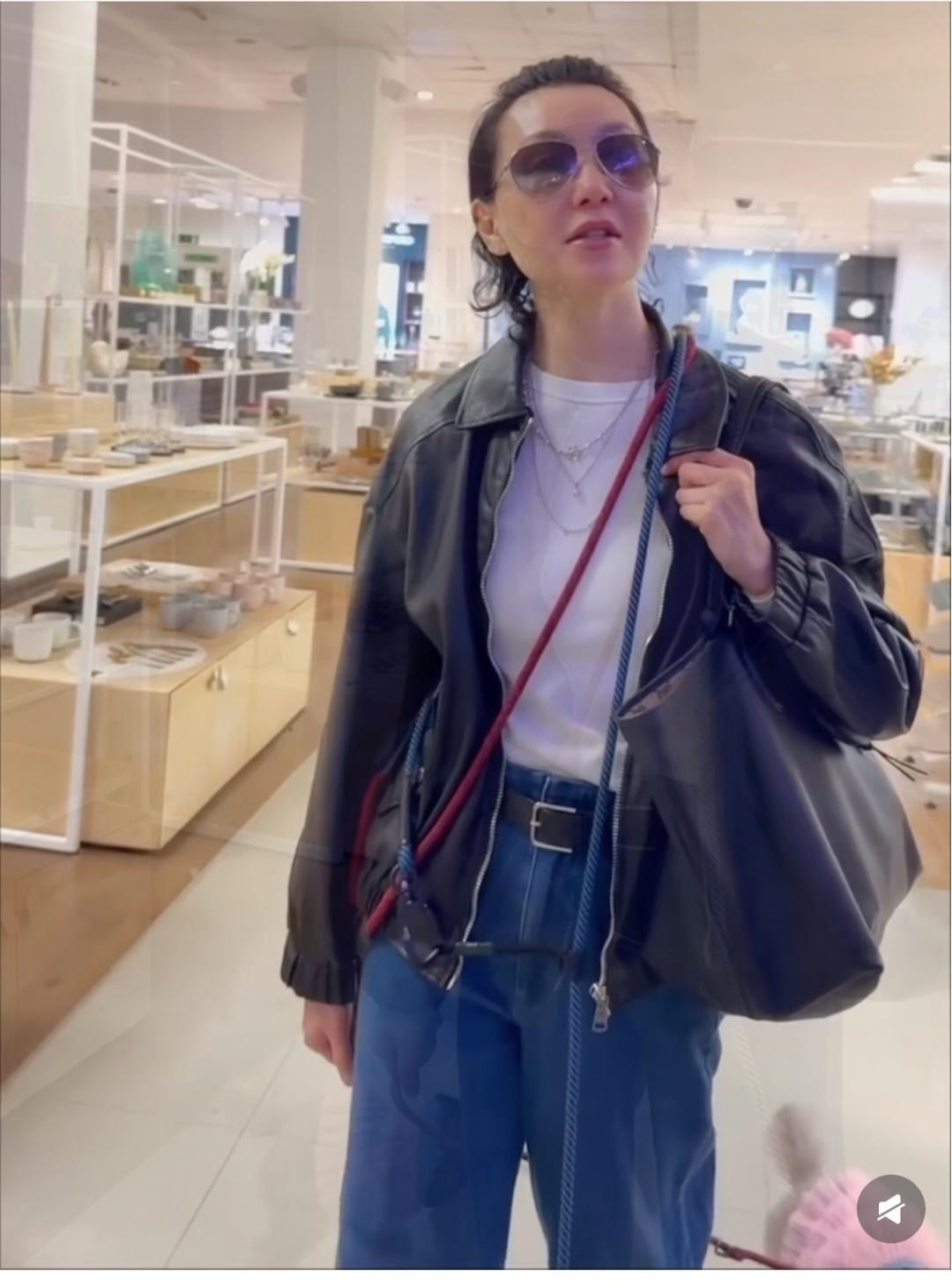 张曼玉,皮衣配牛仔裤,又酷又松弛。