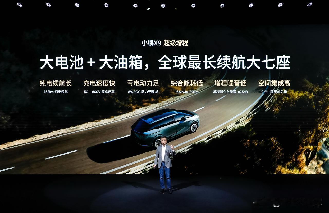 昨晚之后,小鹏不再只做纯电 11 月 6 日,小鹏推出了他们的首款增程车型—— 小鹏 X9 超级增程版。新车分了 Max 和 Ultra 两个版本,预售价格分别为 35 万元和 37 万元,比目前在售的纯电版本低了约 8000 元。 小鹏靠着纯电车型已经稳稳站上了月销 4 万的位置,并提前达成了全年销量,踏入大电池增程这一更广阔的市场,相信会有更好的市场表现。