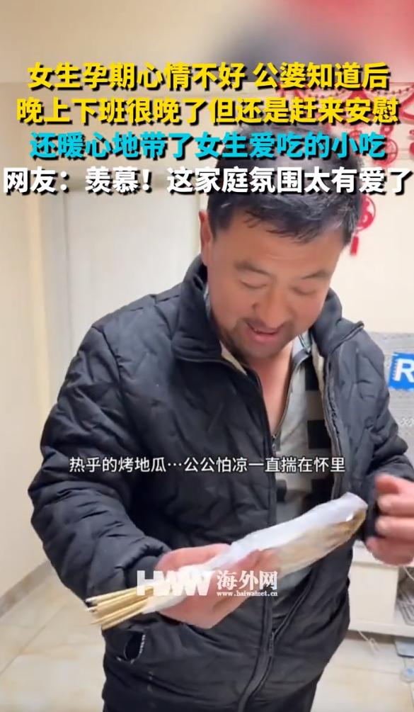 一女子说怀孕后心情很不好,公婆得知后大半夜赶来看望,开门一看是公婆,本来烦躁的情绪更糟。但公公却掏出了奶茶,还从羽绒服里揣了烤地瓜、烧烤串和咕噜饼,婆婆手里也提了一大堆水果和零食。公公:只要你别有那么大压力,吃好喝好睡好,我和你妈干活都有劲! 11月6号,山东一位怀孕几个月的女子正待在家里,这段时间以来,她的心情一直不好,夜里也常常失眠,整个人显得没什么精神。 这天晚上,已经挺晚了,她正蜷在沙发上发呆,突然听到了敲门声。 本来就烦躁的心情因为这突如其来的敲门声更差了,她起身去开门,门打开的那一刻,却一下子愣住了。 门外站着的是她的公婆,两个老人身上裹着寒气,脸被风吹得通红,头发也有些凌乱。 公公身上还穿着白天干活时穿的旧衣服,袖口磨得有些毛边,显然是从干活的地方直接赶过来的,连换件衣服的时间都没顾上。 没等她开口,公公就急忙解开外套拉链,从怀里往外掏东西。 先是拿出一杯奶茶,还带着体温,紧接着又掏出用塑料袋裹了好几层的烤地瓜、烤串,还有酥脆的咕噜饼。 婆婆在一旁接过奶茶,顺手递到她手里,轻声说这是她平时喜欢喝的口味,特意绕路去买的。 她这才注意到,婆婆手里还提着一个沉甸甸的袋子,里面装着各种水果和零食,看得出来是精心挑选过的。 公公搓了搓冻得有些僵硬的手,说看她之前提过心情不好,老两口晚上干活的时候也没心思,总担心她一个人在家没人照顾,干脆就赶过来看看。 公婆心里清楚,烤串这些东西不适合孕妇多吃,但想着她心情烦闷,吃点喜欢的东西能解解闷,还是买了过来,又特意嘱咐她就尝一点,解解馋就行,别多吃。 婆婆拉着她的手坐下,说要是觉得累,手里的活就先放一放,别给自己太大压力,身体才是最要紧的。 聊着天的时候,公公从口袋里掏出一沓钱,塞到她手里,说是天冷了,让她拿去交地暖费,别舍不得开暖气。 她推辞着不要,公公却很坚持,说老两口干活能挣钱,足够花,让她安心在家养身体,不用操心钱的事。 两个老人坐了没一会儿,就说要回去了,怕待太久耽误她休息。 临走前还反复叮嘱,要是有什么想吃的、想做的,随时跟他们说,别自己硬扛着,他们永远是她的后盾,她开心了,全家人才真的开心,连干活都更有劲儿。 看着公婆消失在夜色里的背影,她心里又暖又酸。 公婆家境并不富裕,平时自己省吃俭用,却从来不在她面前提一个穷字,总把最好的东西留给她。 后来她把这件事分享到网上,很快就引起了很多网友的共鸣。 不少网友留言说,这样的公婆真是打着灯笼都难找,完全是把儿媳当成亲闺女在疼。 还有人说,能遇到这样的公婆是天大的福气,老两口的举动里全是真心,没有半点虚情假意。 大家都羡慕她能有这样的好公婆,也感慨这样的家庭氛围才最让人安心。 好的家庭关系从来都不是单方面的付出,而是彼此用心对待。 公婆把儿媳放在心上,用最实在的方式表达关心,这份情谊自然能暖透人心,也难怪会让这么多网友为之动容。