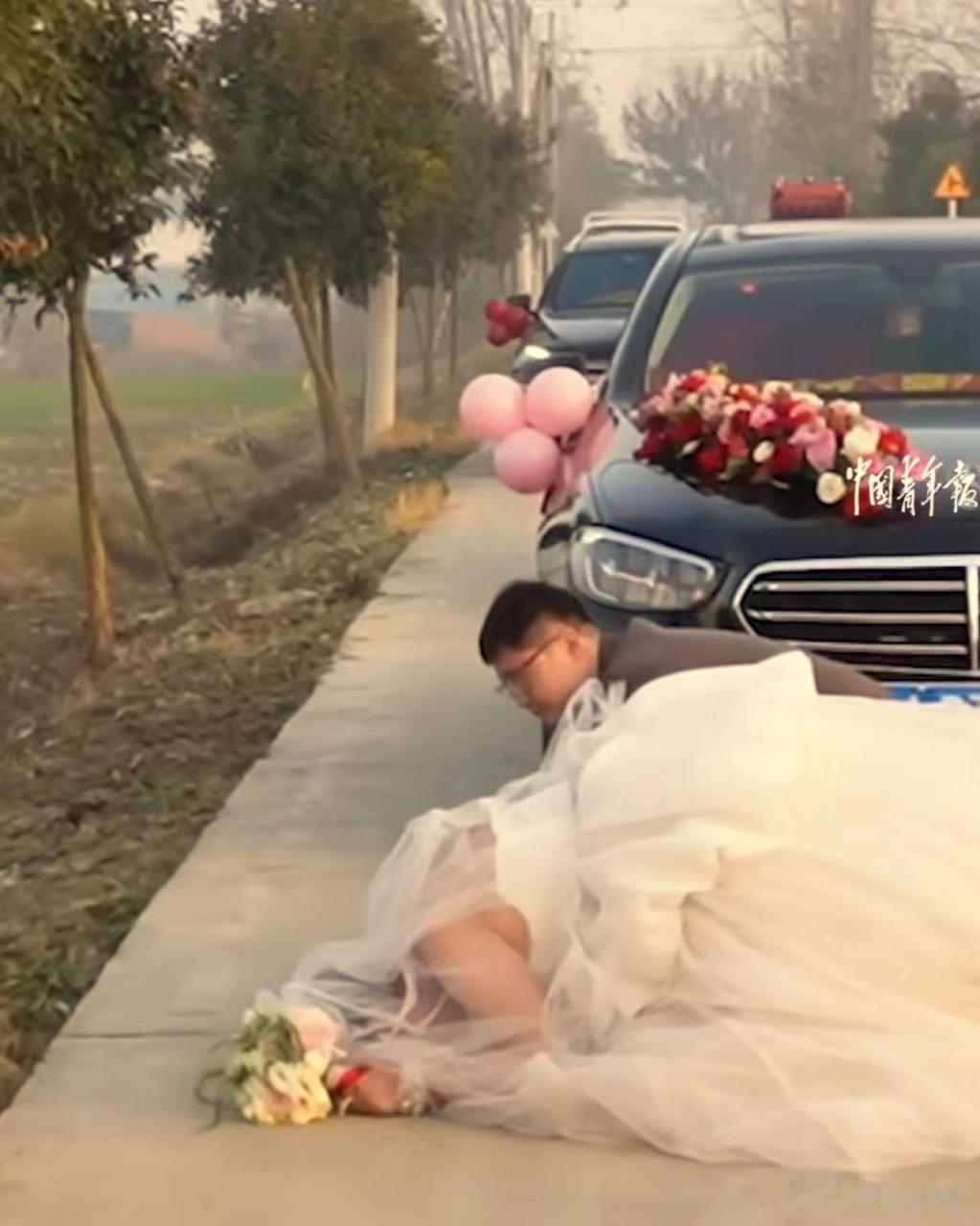 一新娘结婚当天,在去婚礼现场的路上,远远的看到了她父亲的坟,立马下来给磕头,看完心里酸酸的[流泪]