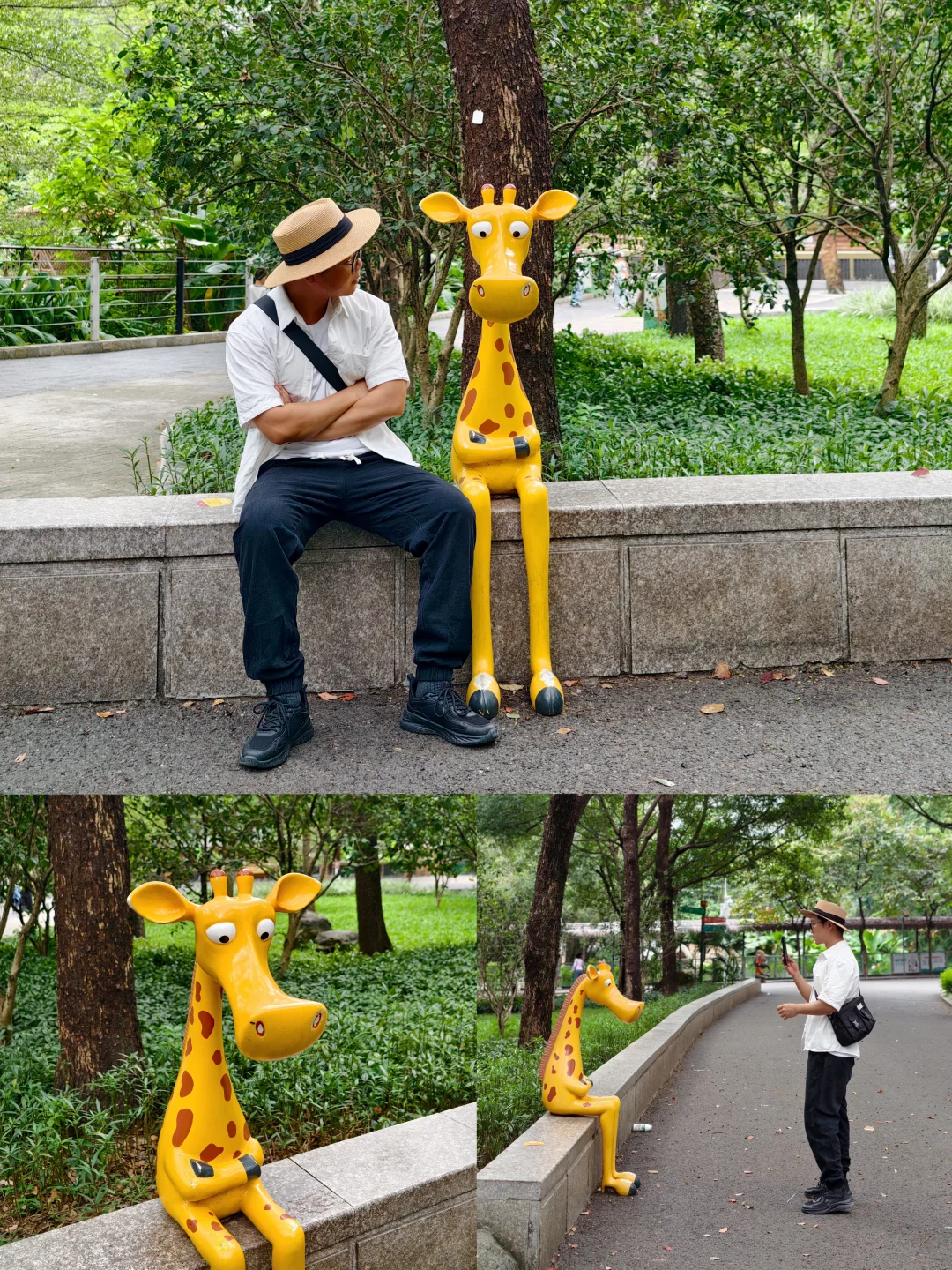 在市区里的动物园 场地大,动物多,大人也喜欢逛[暗中观察R] 也是一个周末休闲的好去处 有好多隐藏在路边的动物玩偶 拍照打卡点: 小伞窗户,城堡,玫瑰园(动物园站那个门进来就是) 20r投喂长颈鹿、互动拍照超出片 动物雕像 大象、长颈鹿、袋鼠(在每个动物区域附近) 熊猫馆附近:蘑菇,熊猫雕塑 阿杭狮子馆旁边:动物尾巴 锦鲤苑:爱心鱼缸 游乐场:动物雕像长凳、洗手间门口的两只梅花鹿 📍:广州动物园 🚇:5号线动物园站b/c出口 🎫:20