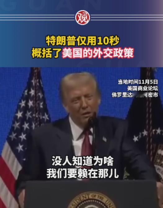 特朗普仅用10秒概括了美国的外交政策 为了花军费的过程中,让军工复合体和史密斯专员得利(只是老特家族后到,没轮得上分配) 打伊拉克是为了石油,打阿富汗是为了遏制中国崛起,结果现在我们6代机都飞出来了,那么打阿富汗到底图个啥?老川应该是这个意思吧。 川普唱的什么戏还不知道吗?把锅丢给前任,都是在捞政治资本而已。每一届总统都是为自己政治利益服务,丢锅给前任一直都是他们传统。