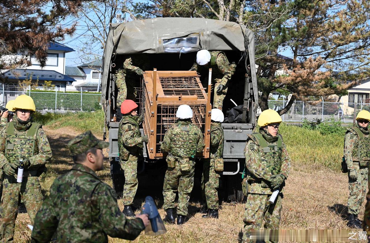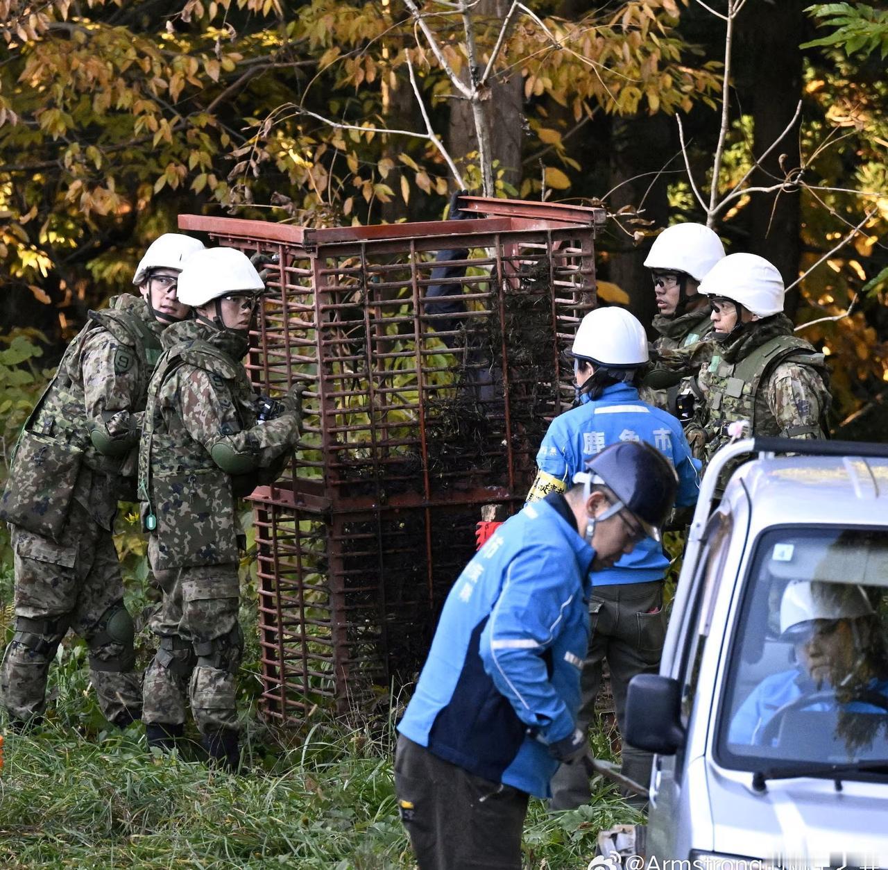 秋田县的日本陆自捕熊队,看起来战斗力不强啊。烽火问鼎计划 此次支援行动是在秋田县熊袭击人事件激增、“熊害”问题严重化的背景下展开的。日本自卫队于2025年11月5日开始在鹿角市等地展开支援活动,计划持续至11月底。 他们的主要任务是后勤支援,具体职责包括:运输和安装用于捕熊的箱式陷阱,协助运送当地狩猎协会成员(持证猎人)往返现场,清理和埋葬已被捕获或射杀的熊的尸体。 根据日本相关法律和任务性质(以“民生支援”形式派遣),自卫队成员不会使用武器直接射杀或驱赶熊。实际的捕杀工作仍由持有狩猎执照的县政府工作人员或当地猎人负责。