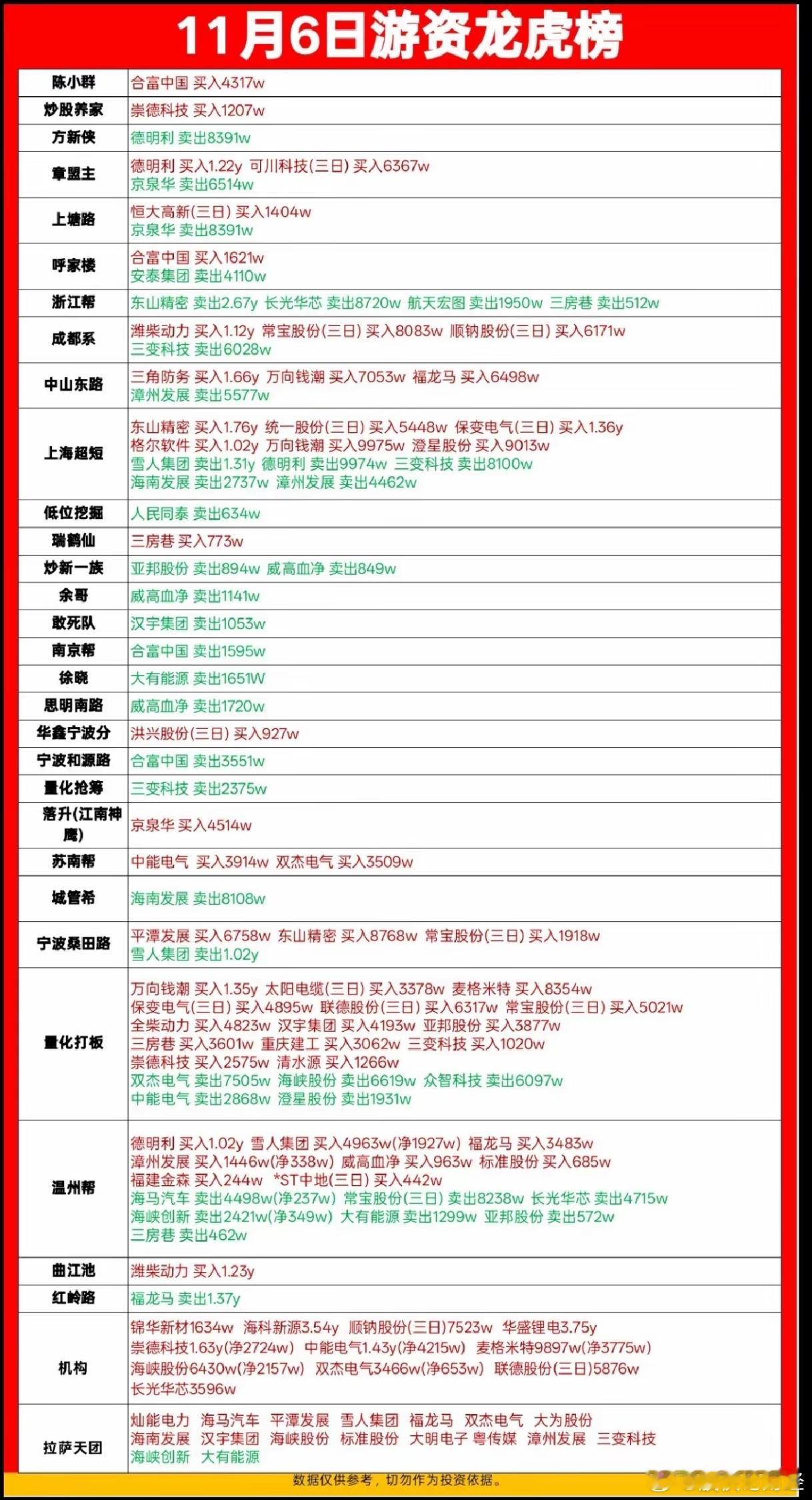 11月6日主力资金净流入前20榜单11月6日主力资金净流出前20榜单
