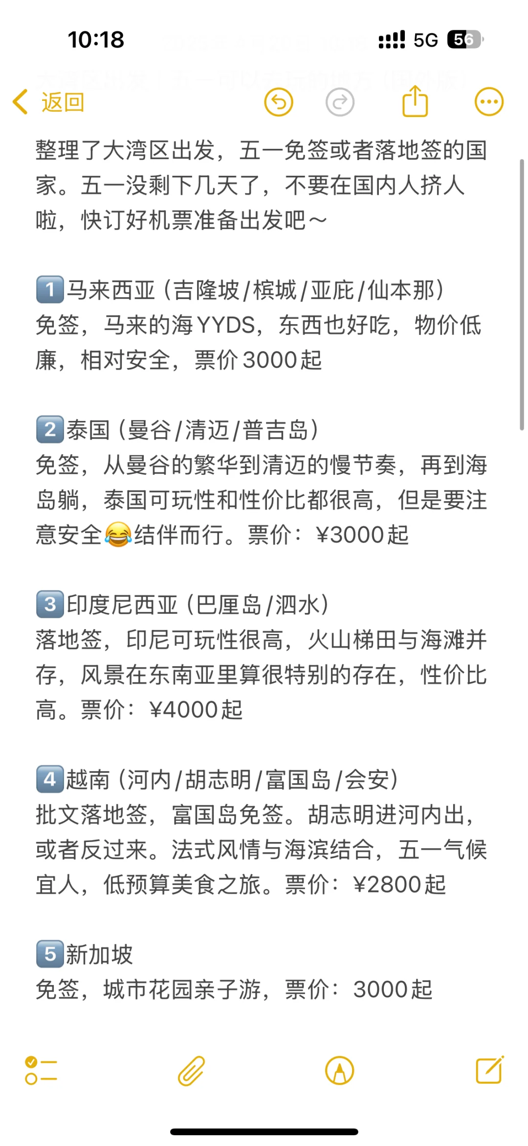 整理了大湾区出发,五一免签或者落地签的国家。五一没剩下几天了,不要在国内人挤人啦,快订好机票准备出发吧~