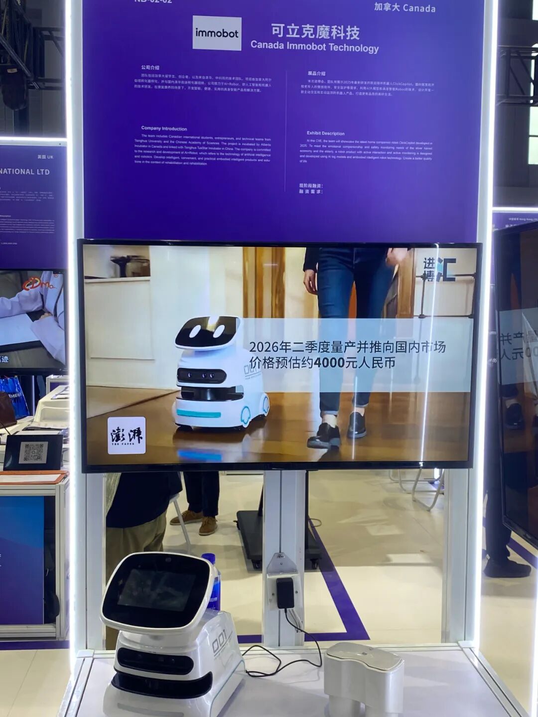 除了老朋友,专区不乏新产品和新面孔。例如,加拿大创企可立克魔今年带来了一款最新研发的家庭陪伴机器人ClickCopilot,吸引了不少参观者驻足、体验。