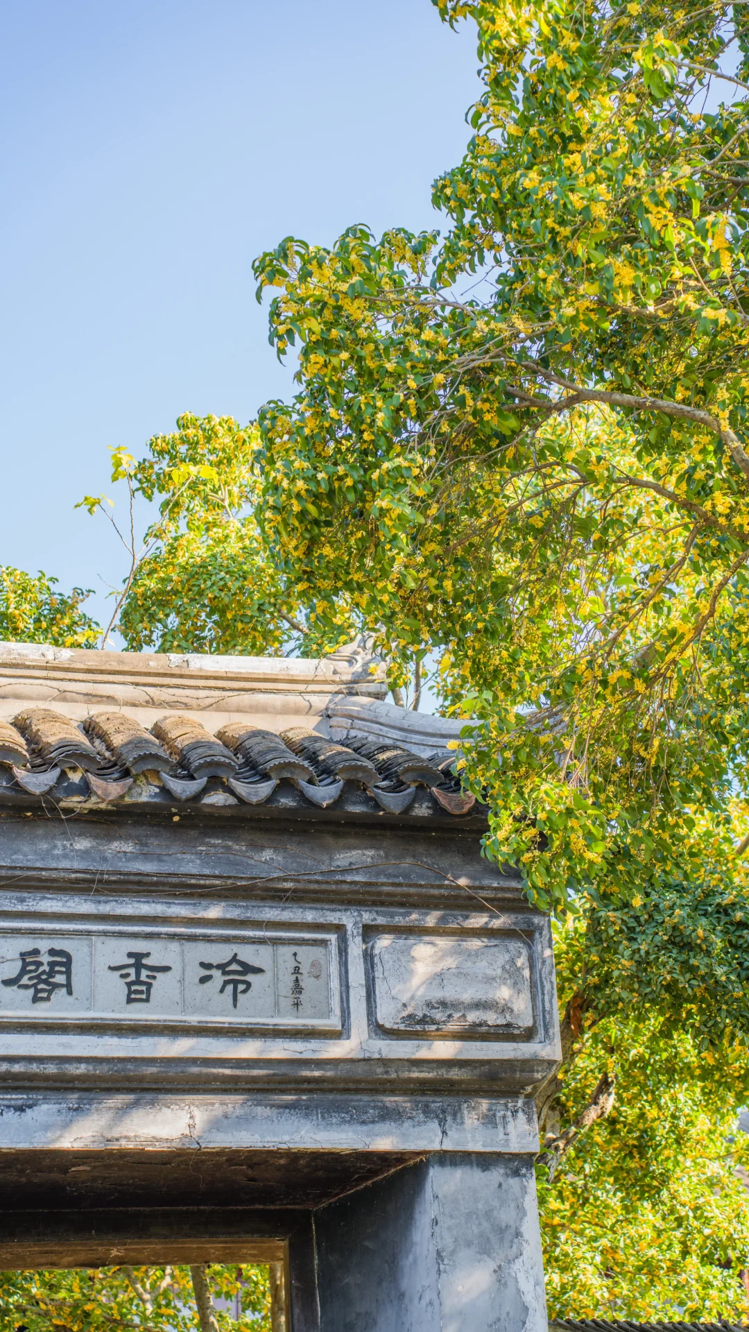 虎丘冷香阁 金色碎雨正簌簌落下 “桂子月中落,天香云外飘” 此刻才懂 古人诗句从不欺我 坐在石凳上 看阳光透过百年桂树 筛下斑驳光影 瓦当滴水,青苔暗生 时间在这里慢了下来 想起白居易任苏州刺史时 是否也喜欢虎丘的“山塘桂雨” 不知他是否也曾在此 被一阵秋风拂过衣襟 让落花缀满诗笺 - 📍虎丘山风景区 -