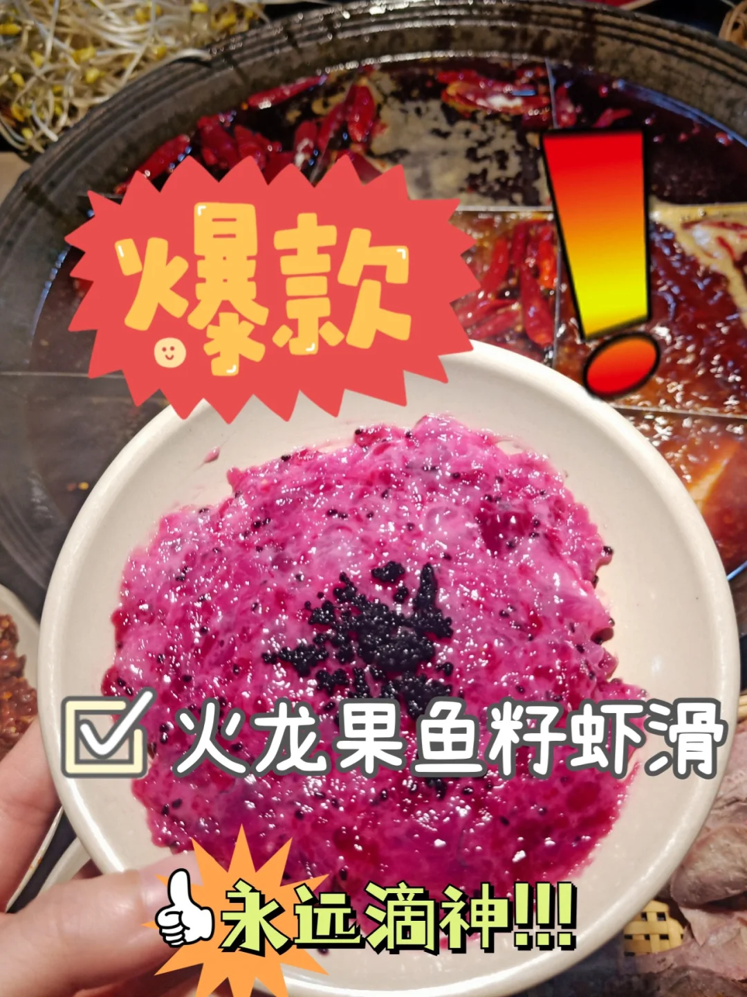 1⃣火龙果鱼籽虾滑:[色色R]水果+虾滑,碰撞出不一样的口感,吃完绝对不会失望!多煮几分钟