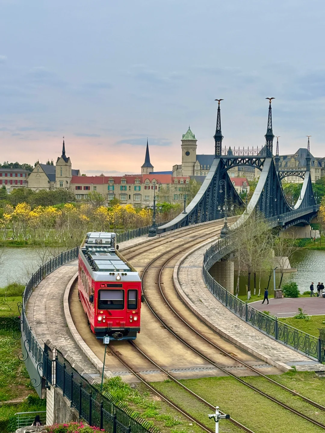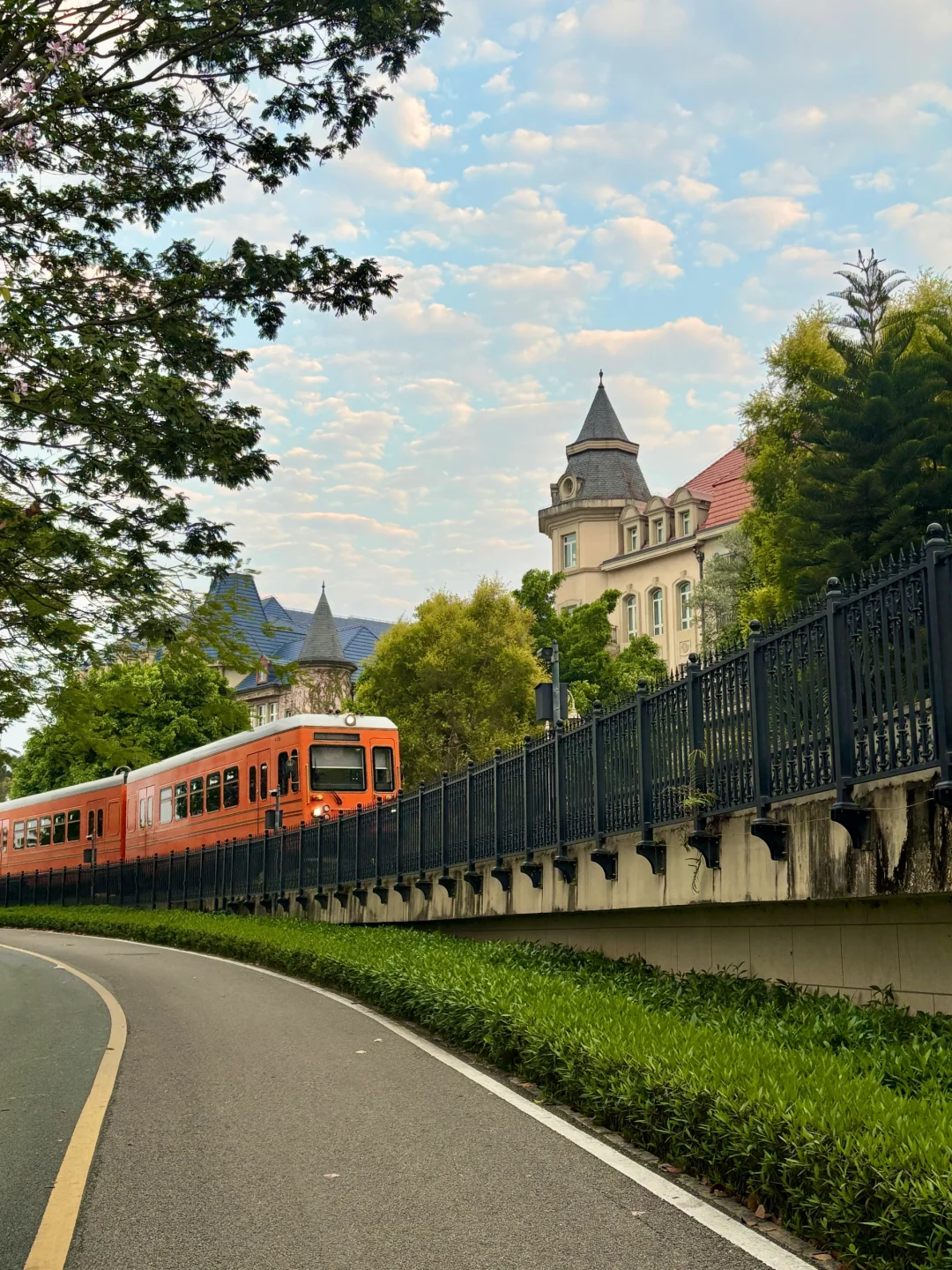 可以近距离拍到城堡、钟楼还有小火车,沿路的数都开花了,很适合散步~