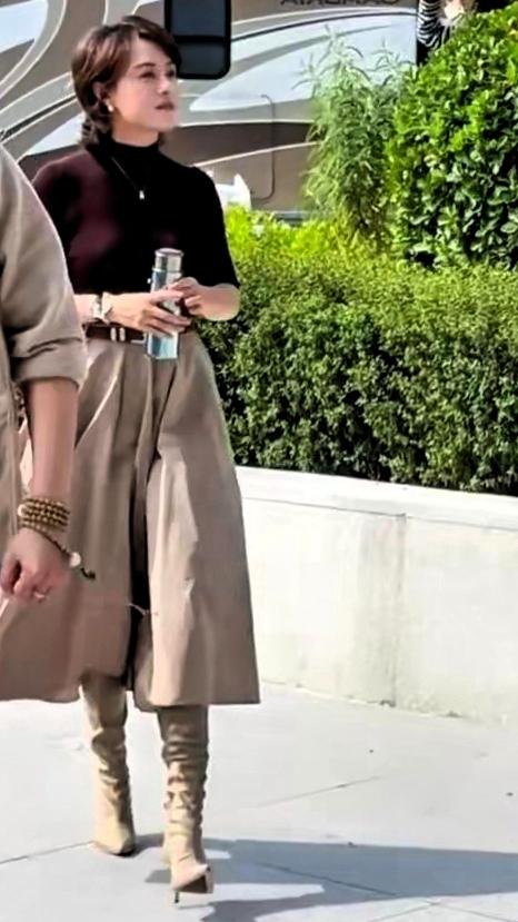 宝子们快来看!43岁的孙俪被偶遇,这身打扮也太知性了吧! 深棕上衣配卡其色大摆裙,腰上一条细腰带勾勒出纤细腰线,脚上的裸靴一搭,优雅又有范儿。手里还捧着个保温杯,把“养生达人”和“时尚辣妈”的人设融合得恰到好处,这身材管理绝了,哪像奔四的人啊! 从《甄嬛传》到现在,孙俪一直是实力派的代表,私下穿搭也这么有品味。你们觉得她这身造型是不是很戳人?快来评论区聊聊你最get她的哪个风格~孙俪 孙俪演技派代表 孙俪综艺首秀
