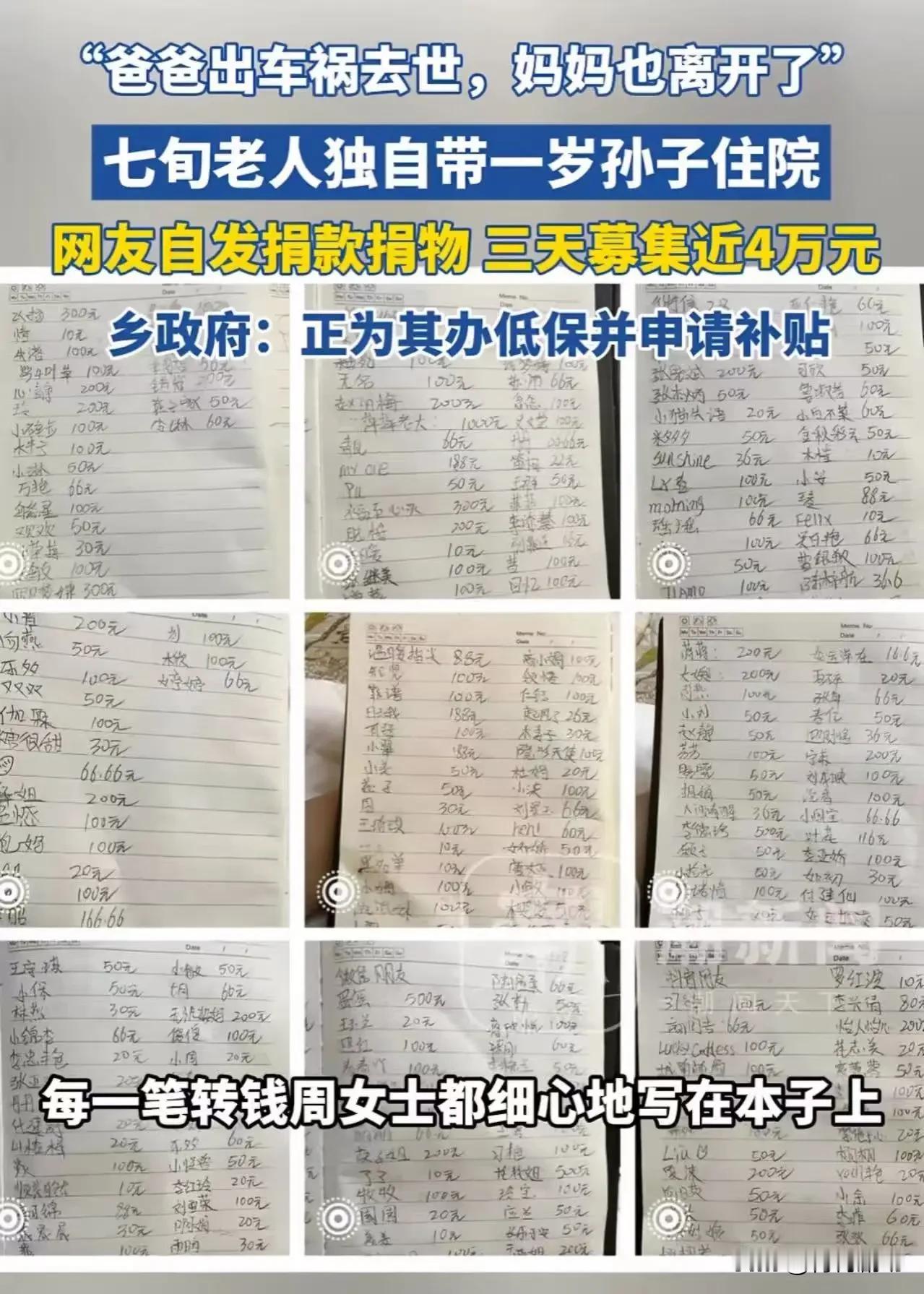 云南昆明,女子在病房看见70多岁老人带着1岁宝宝住院,孩子穿着很单薄,忍不住问老人孩子的爸妈在哪里?没想到老人说:“孩子2个月大时,他爸爸就车祸去世了,妈妈下落不明……”女子听后非常同情,决定帮老人一把…… 这位女子的心,被那一瞬间的无助深深触动。她看着那孩子那稚嫩的小脸,穿着单薄的小身子在病床上微微颤抖,心里涌起一股难以名状的酸楚。70多岁的老人,满脸皱纹却依然坚毅,他的眼中没有怨恨,只有对生命的坚韧和对孙子的无限爱。女子忽然明白,这不仅仅是一场普通的住院,更是一段关于生命、关于责任、关于希望的故事。 “老人家,您不用担心,我会帮你们的。”女子轻声说,眼眶微微泛红。她开始在心里盘算:这个小生命如此脆弱,却已经经历了太多的苦难。或许,他的父母因为意外离去,留下了一个孤儿,但生命的意义,也许正是在这样的困境中被重新点亮。 于是,她决定行动。她联系了医院的社工,帮助老人申请社会救助;她在社区里发起募捐,呼吁更多人关注这对祖孙;她还主动联系了志愿者组织,为老人提供陪护和照料。更重要的是,她希望能找到孩子的亲人,让这个小生命拥有完整的家庭。 在这个过程中,她发现,许多像她一样的普通人,心中都藏着一份善良和责任。或许,我们都曾在生活中遇到过类似的故事,或许我们都曾被某个瞬间的无助触动。这个故事告诉我们:无论世界多么复杂,善良从未远离。每一个被命运折磨的生命,都值得被温暖呵护。 或许,我们无法改变所有的命运,但可以用一份真心,点亮一盏希望的灯。那盏灯,或许就是一个陌生人的善意,一次伸出的援手,或者一句温暖的话语。正是这些微小的善行,汇聚成温暖的海洋,驱散了黑暗,也照亮了未来。 让我们都成为那道光,哪怕只是一点点的温暖,也能让这个世界变得更加美好。因为,生命的价值,从不在于它的长度,而在于它带给世界的光和爱。每一个孤单的灵魂,都值得被守护,每一份善意,都值得被传递。 故事还在继续,而我们,是否也能在日常的点滴中,找到那份属于自己的责任和温暖?也许,只需一个微笑,一句关心,就能改变一个生命的轨迹。请记住,善良,是我们最珍贵的财富;爱心,是我们最强大的力量。让我们一起,用行动去温暖这个世界吧。