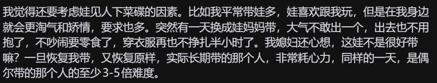 爸爸带娃:这娃咋这么省心?妈妈们却把自己折腾垮了! 亲爱的朋友们,今给大家说个事!这位爸爸分享带娃经历,真是看乐了!他家闺女从小就笑眯眯的,不哭不闹,吃饱就睡,特别皮实。娃妈、奶奶、月嫂们却一个个把自己累垮了,还焦虑得不行。为什么?就因为她们总在瞎折腾!娃在家不穿鞋?她们硬逼着穿,说怕肾病、怕脏。爸爸说,地暖房不穿就不穿呗,拖拖地就干净了。娃吃奶喝不到?戴乳盾一周都不会用,硬是让娃饿哭。爸爸上网查查,一下就搞定。娃热起痱子?屋里30度还不开空调,怕“受风”。爸爸抱娃去走廊凉快点,娃立马睡着。娃饿得哭?限量喂奶,瘦得跟干柴似的。爸爸加量,娃才饱。结果呢?娃性格好,跟爸爸亲,妈妈们却崩溃了。 爸爸说,带娃很简单,别发明麻烦事儿,解决问题就行。他媳妇问,如果他离家出走10年,娃会有毛病吗?爸爸说,单亲家庭不也活得好好的?雇月嫂请保姆,别把自己累死。 爸爸说,带娃很简单,别发明麻烦事儿,解决问题就行。 这事儿戳中我了!假努力 贯穿一生,就是 认知障碍 加 控制欲!妈妈们总爱制造假问题,自找苦吃。娃本来好带,非得折腾出麻烦,满足控制欲,自我感动。结果娃累,大人更累。带娃 别瞎忙,学学解决问题,少点焦虑,多点智慧。原生家庭 观念老旧,也别绑架娃。咱们老百姓谁不累?但别把娃当出气筒,活得轻松点才对!