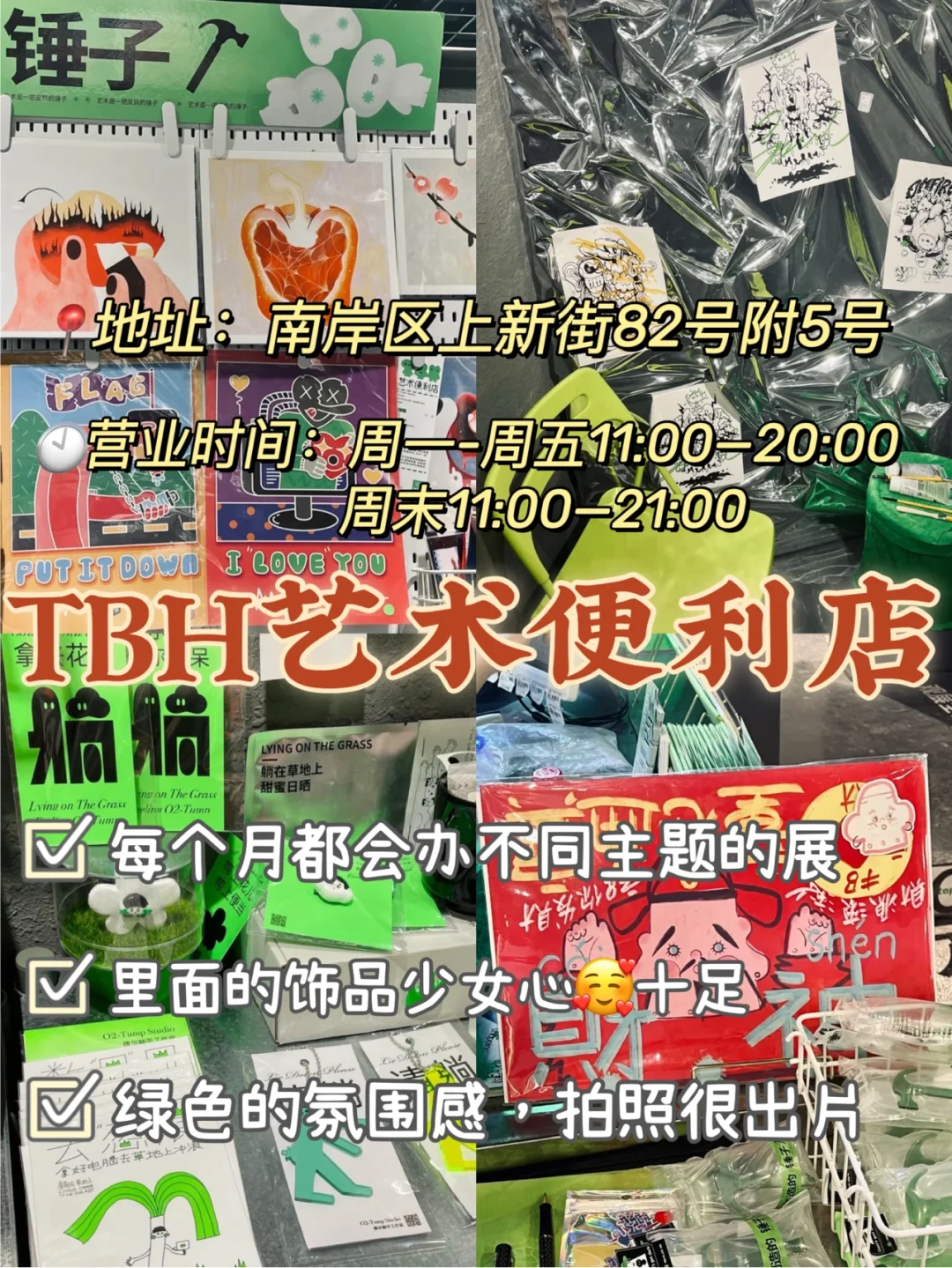🌈深灰和绿白的装潢艺术🎨感十足,里面的展览也很有个性,各种画框、挂饰、耳环等都是年轻艺术家们的原创