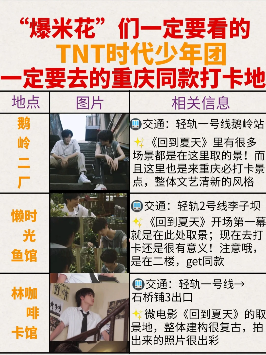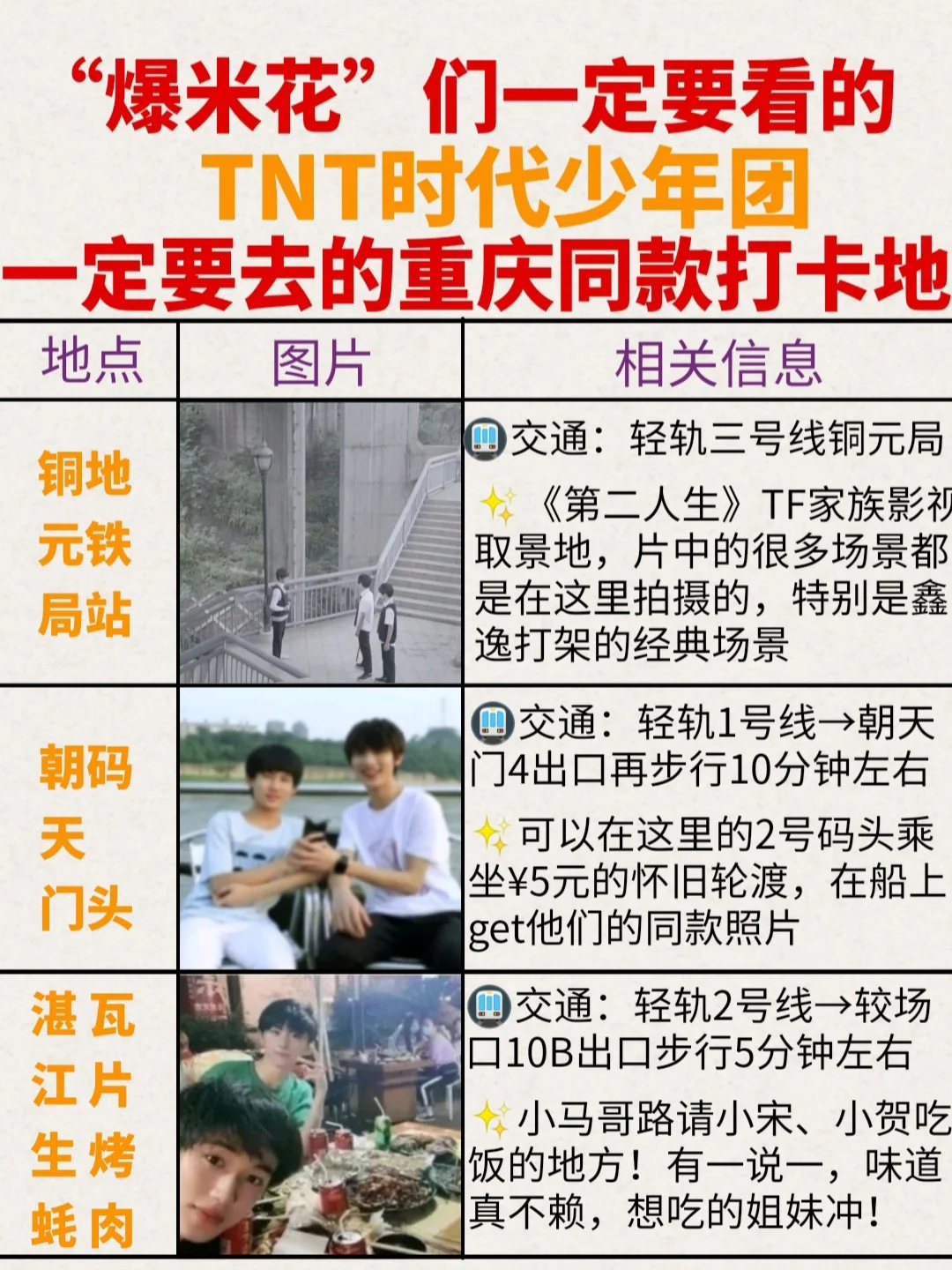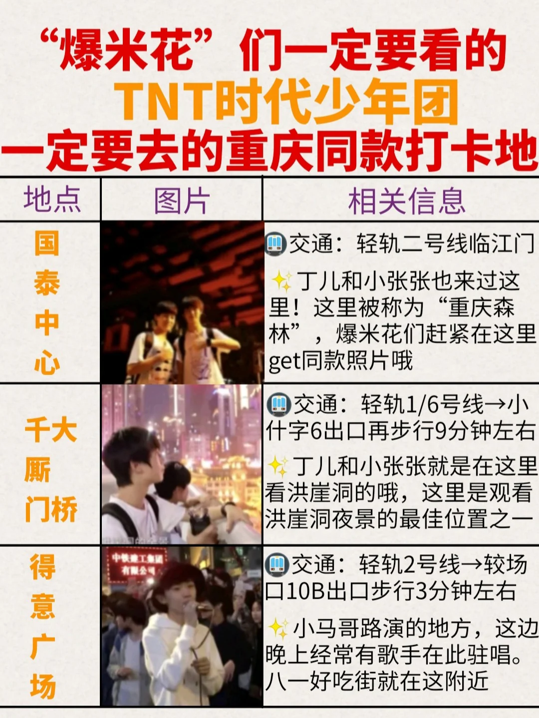 这段时间入坑了时代少年团,弟弟们真的“好帅”[赞R]!所以做了这份TNT时代少年团 重庆[地点]同款打卡地,爆米花们冲![哇R]反正我是都去过了哦!