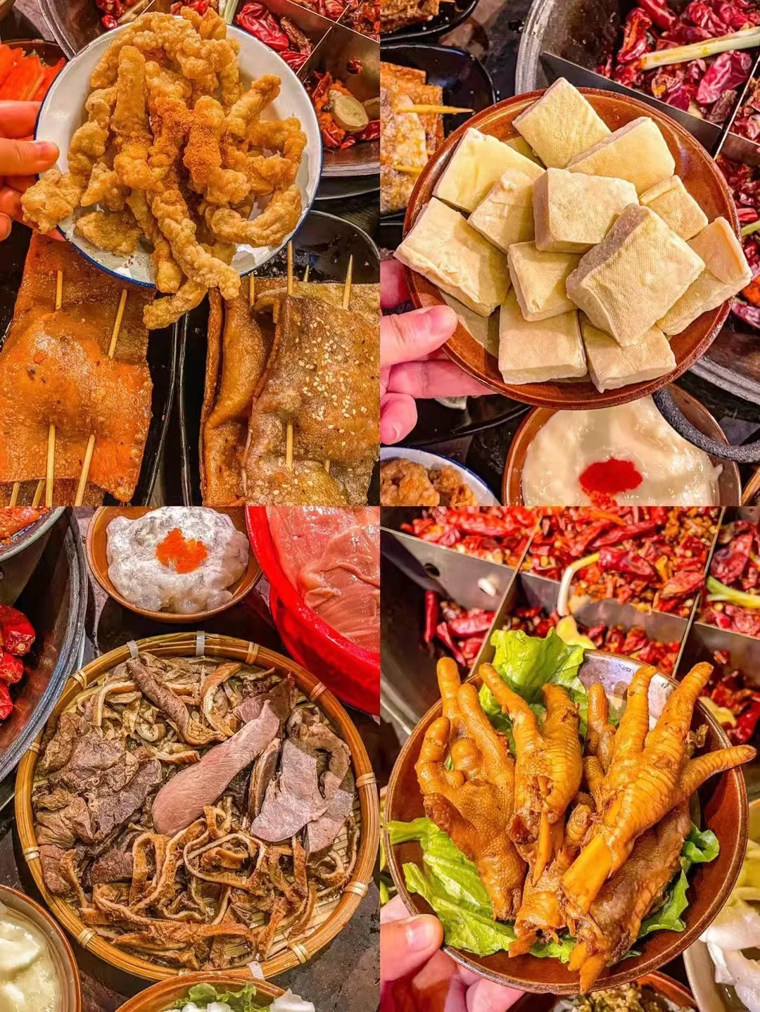 9️⃣来重庆不要天天吃火锅,胃遭不住,火锅推荐试试天棒老火锅 🍲,居民社区里的火锅店,坐在院坝里吃,很有氛围感,一定要吃烧烤,[色色R]正好这家就有烤苕皮