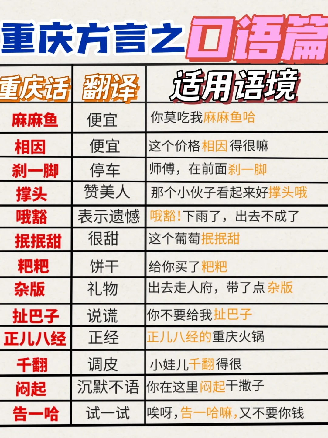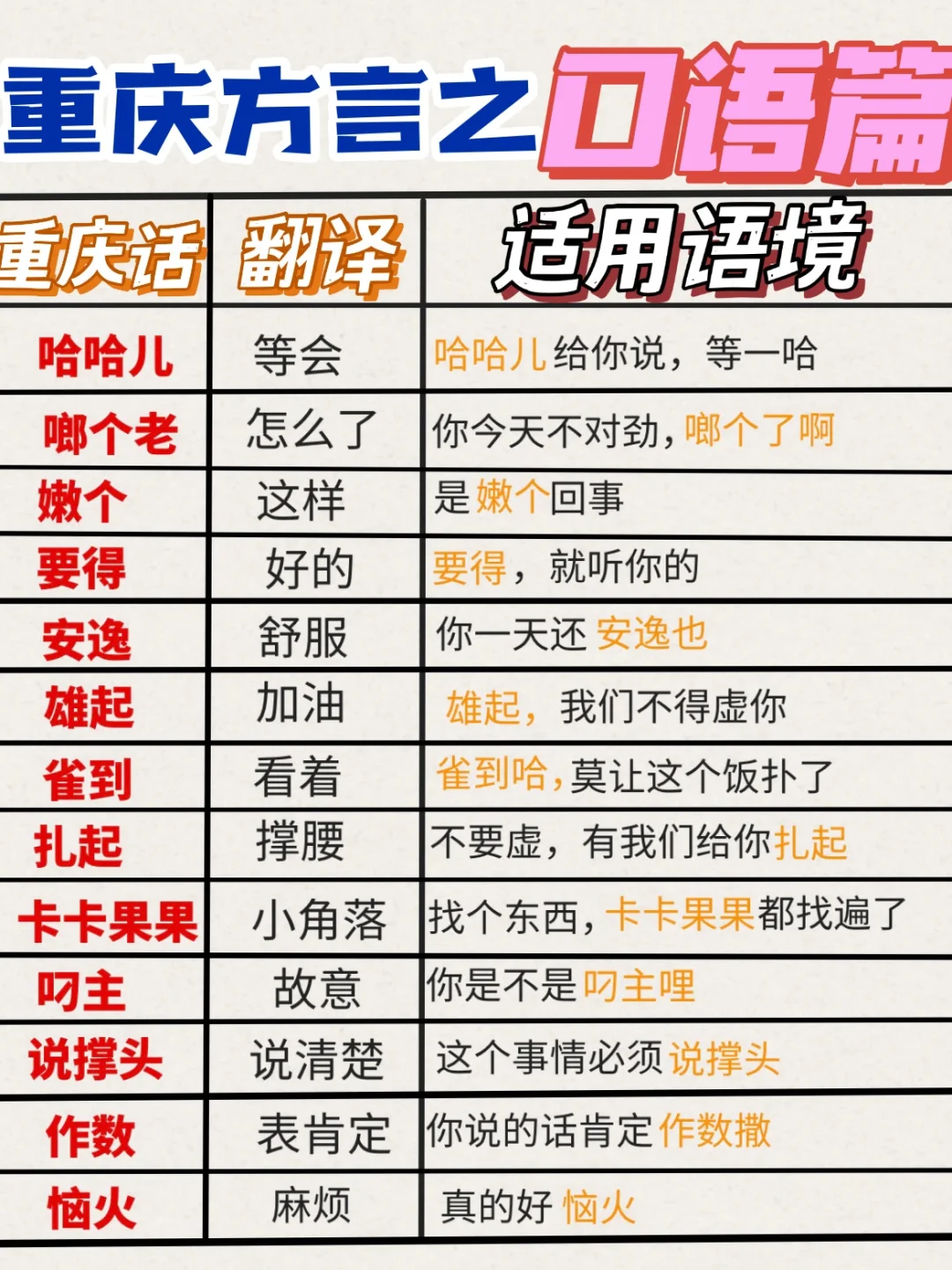 来重庆旅游,要来体验哈啷个说重庆话,给大家整理了常用的重庆言子👀
