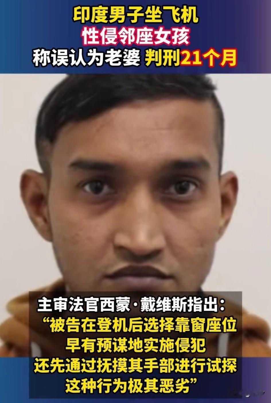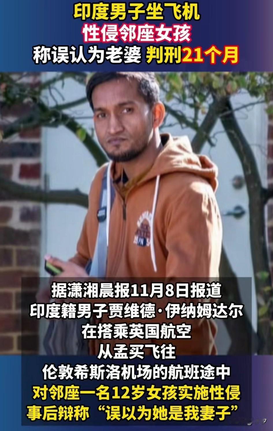 印度男子飞机上也不老实, 居然敢对邻座12岁女孩下手, 但是女孩正在熟睡, 突然感觉自己的身体被人触碰, 结果发现正式旁边的34岁的印度大叔, 这实在太可怕了, 也不知道这位大叔在想什么, 这又不是印度的公交车, 怎么可能让你为所欲为, 随即就向机组人员求助了, 该男子下飞机后就被逮捕了, 他还狡辩把12岁的女孩看成了自己的妻子,你明明一个人做的飞机, 这理由也太扯了, 就算是你妻子在飞机上办事是不是也不合适,就这种人居然还是一家公司的主管,公共场合居然这样, 印度人真的太可怕了! 大家对于这位印度人的行为怎么看? 印度小伙 印度强奸案 印度男士 男子的暴力行为 印度少女强奸案 印度性侵女童 印度男生