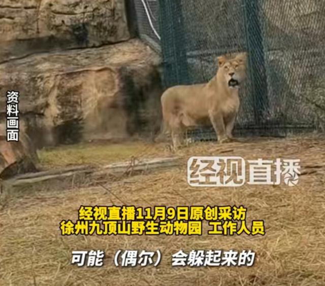 11月9日,江苏徐州。有网友发布视频称,徐州九顶山野生动物园内一只名为“柯基”的非洲狮于当天正式亮相,引发热议。经视直播记者联系园区,工作人员证实,“柯基”确实已于11月9日正式对外展示,今后将长期在展馆中生活。