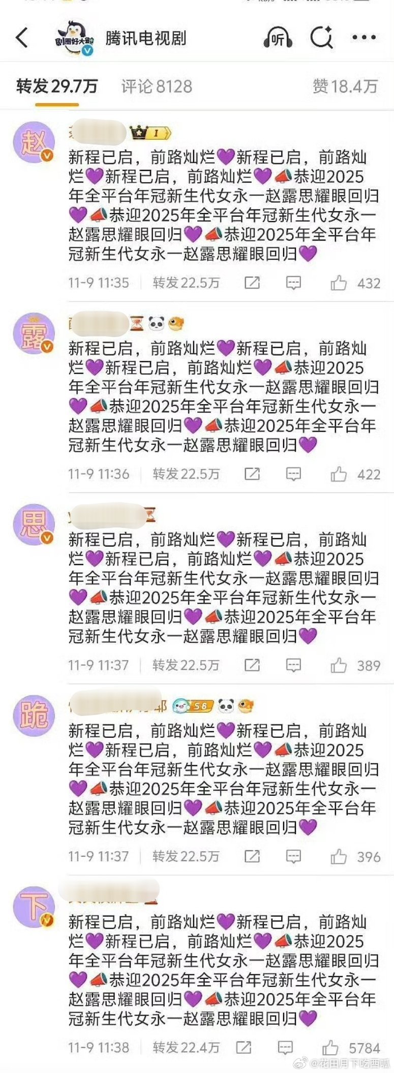 赵露思、虞书欣 粉丝在🐧官博下面排 字的大型翻 车现场🈶