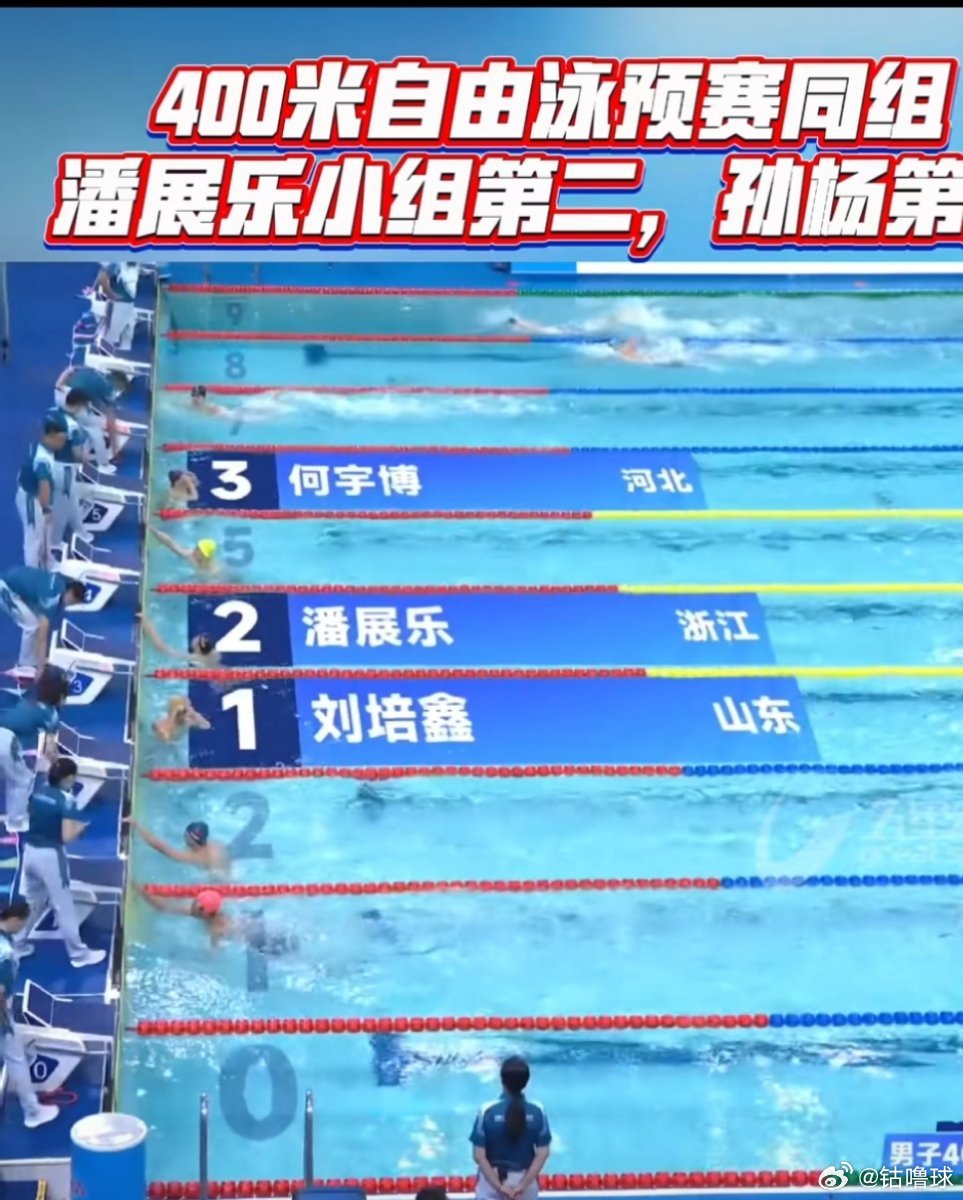 2025年11月10日上午十五运会游泳项目男子400米自由泳,潘展乐孙杨这场预赛中两人同处第4小组,潘展乐以3分51秒64的成绩获小组第二,总排名第五晋级。孙杨的表现则比较惊险,他游出3分52秒90的成绩,小组排名第五,最终以总排名第八、领先0.1秒的微弱优势拿到决赛资格。此外,徐海博、张展硕、费立纬等名将也顺利晋级,决赛的冠军争夺会十分激烈。