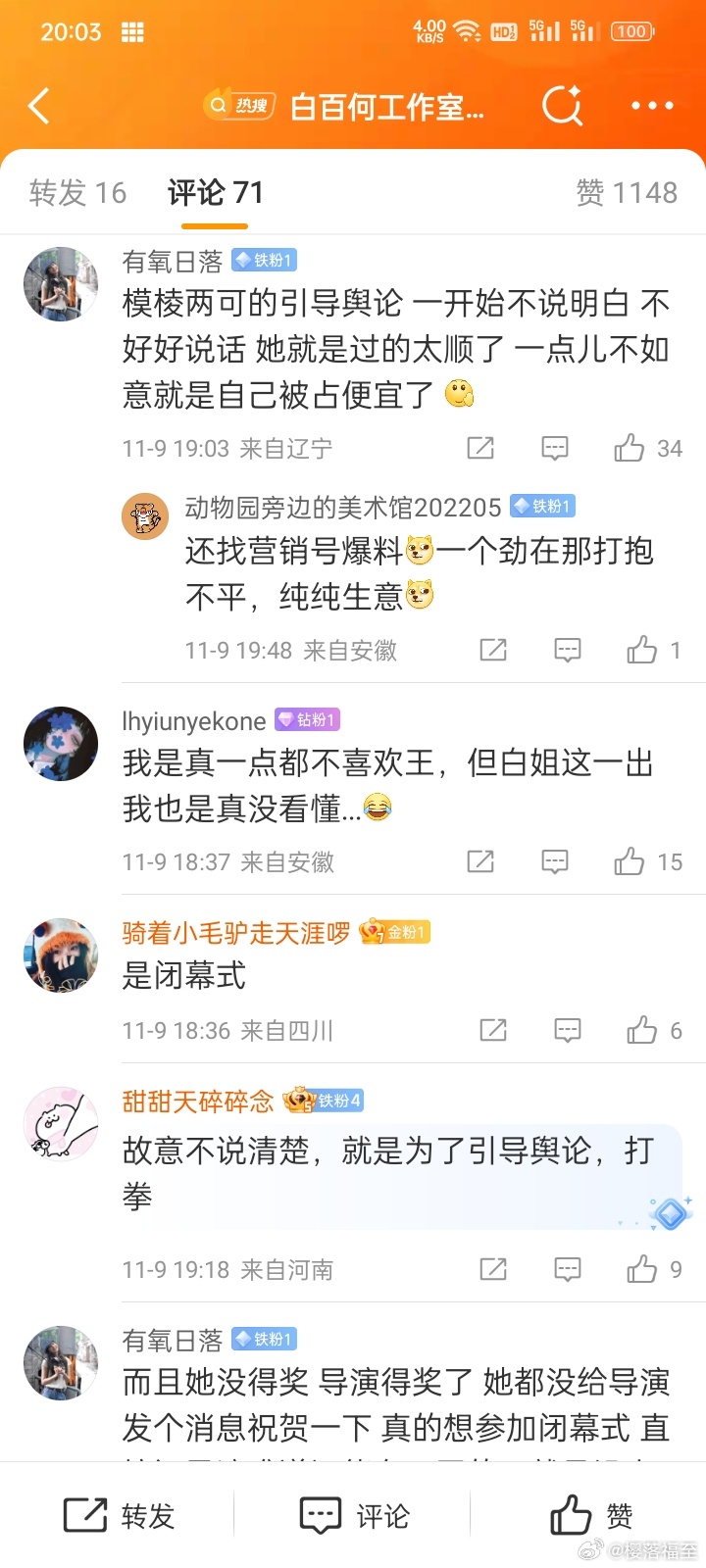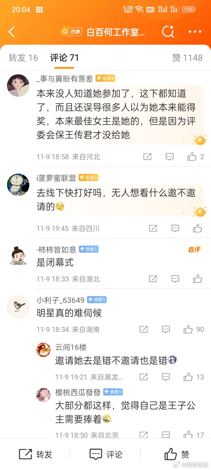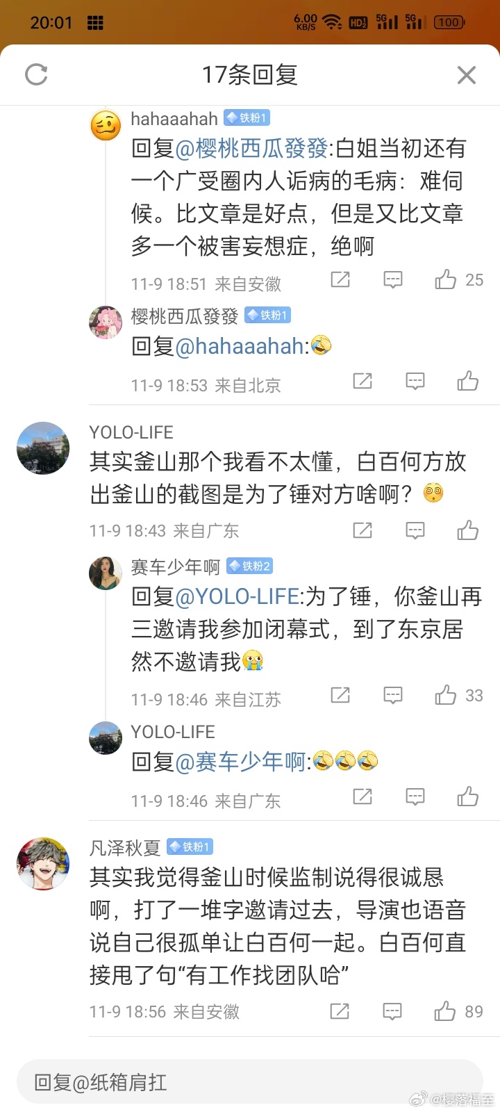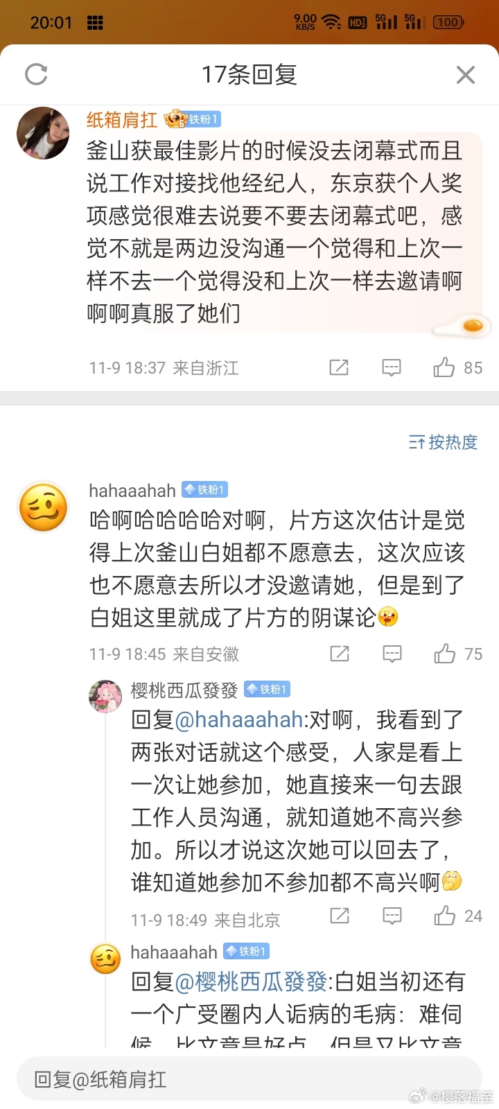 最关键的是:釜山拿最佳影片,制片人那么卑微的从9月24号联系到25号,想确定她愿不愿意出席闭幕式,整整一个晚上她都不回制片人消息。