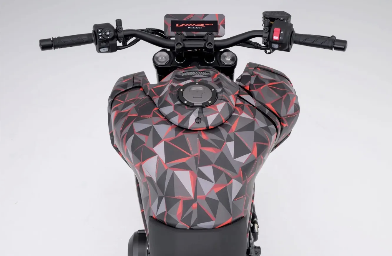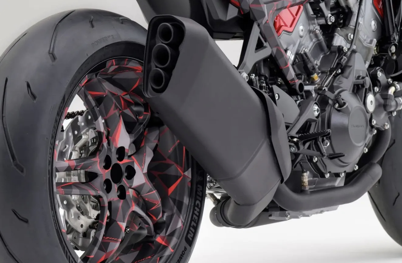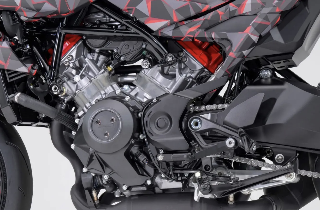 发动机采用去年在米兰车展上亮相的 900cc 水冷 V3 75° 发动机,该发动机配备了创新的电子控制增压器,不受转速限制就能输出强大的扭力,宣称动力超越 1200CC 级别的水平。