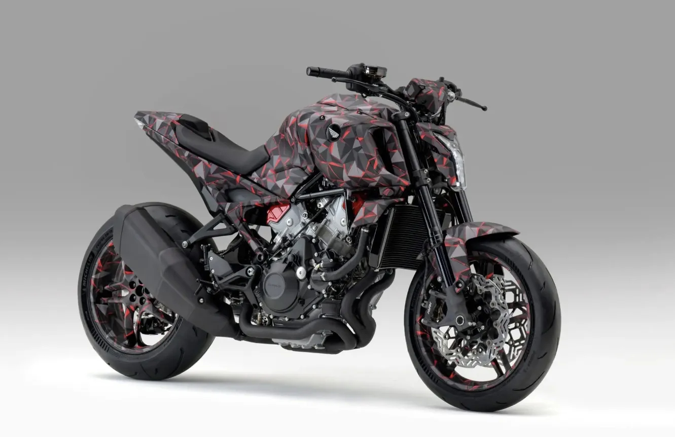 车市热门[超话] 本田V3增压首款车型曝光,该车仍处于概念车阶段,命名为 V3R 900 E-Compressor Prototype。外观贴花还是伪装色,细长的头灯,油箱两侧有巨大的进气口造型,采用发动机兼顾车架结构,后轮为单摇臂,整体线条流畅简洁。
