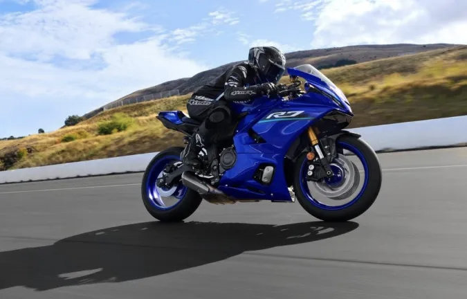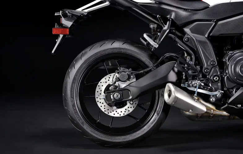 雅马哈对2026款R7的车架进行了重新设计,通过调整钢管直径、厚度和加强部位,提升了纵向、扭转和横向刚性。工程师在不增加重量的前提下,成功提升了车架刚性。41mm全可调倒立式前叉现在采用铝合金活塞杆,成功减重350克。新型三角台借鉴了R1和R9的设计,进一步提升了转向精度。后摇臂经过重新设计,配合轻量化的Spinforged车轮,带来更灵敏的转向反应。