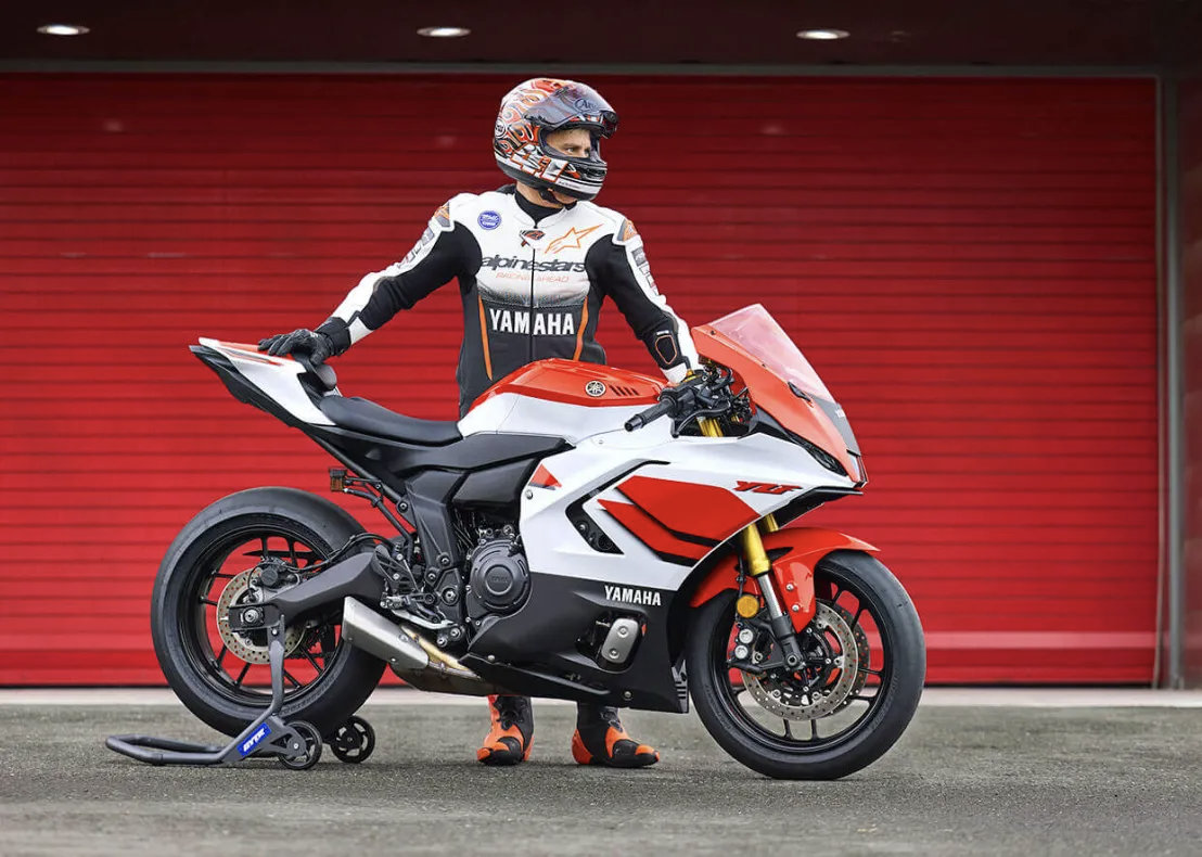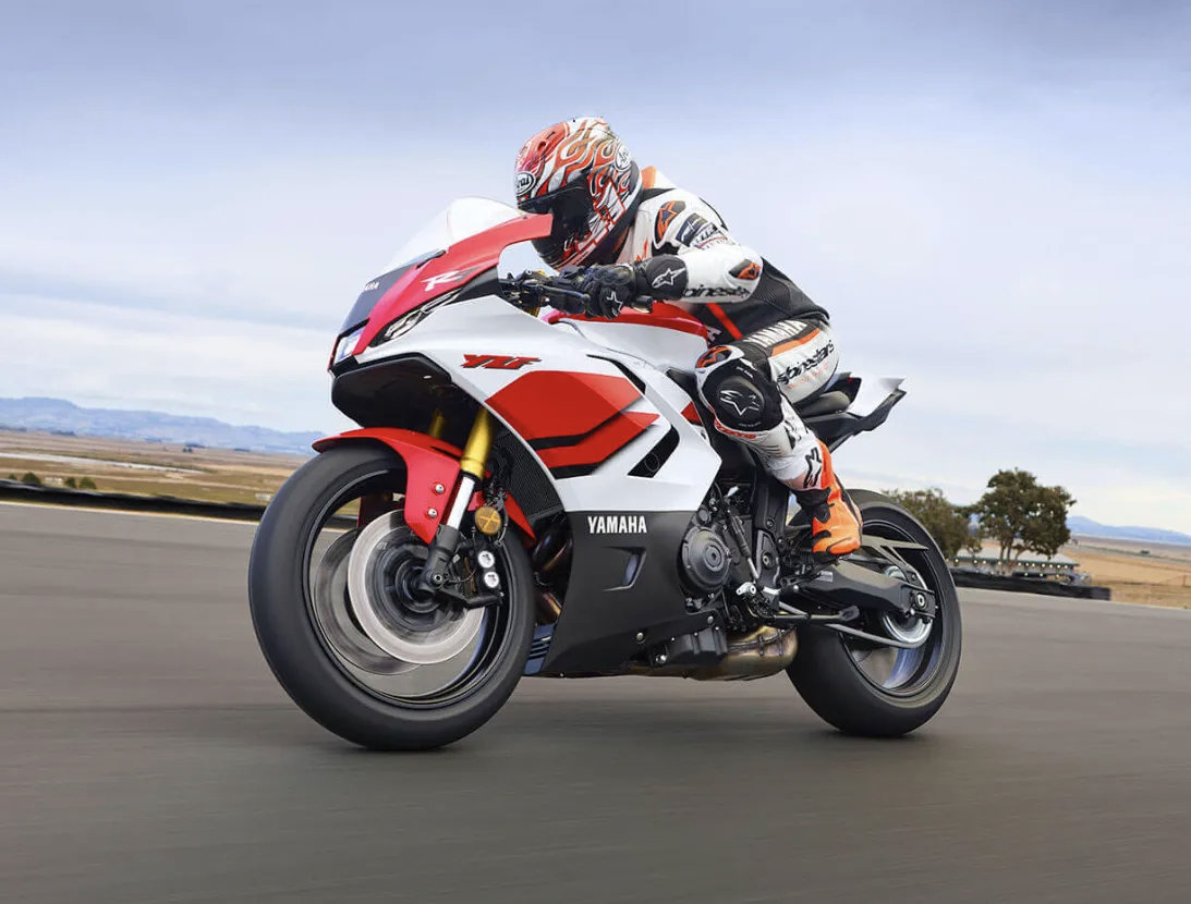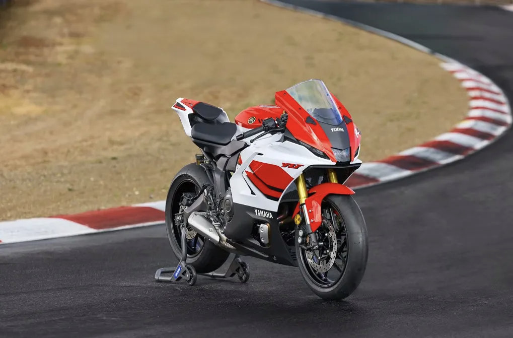 2026款R7的外观造型向新一代R系列家族设计靠拢,更锐利的线条、更简洁的侧整流罩和集成在后视镜中的LED转向灯,都彰显其现代感。5英寸全彩TFT仪表支持四种显示主题和专用的赛道模式,包括单圈计时功能。通过Yamaha的Y-Connect应用,骑手可以在屏幕上接收消息通知、通话信息,并享受完整的导航功能。另外为庆祝雅马哈创立70周年,新款R7特别推出红白配色的纪念版涂装,向1999年经典的YZF-R7赛车致敬。