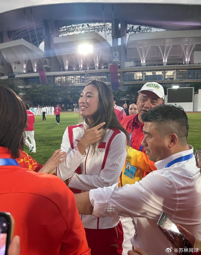 王欣瑜和郭晶晶第三棒场内火炬手。场面很燃了。全运会开幕式全运会