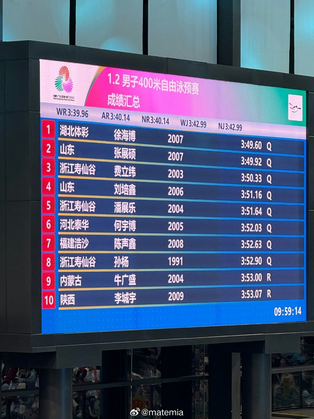全运会孙杨今晚出战两项决赛 孙杨和其他选手之间的年龄差距,90后老将的拼搏。