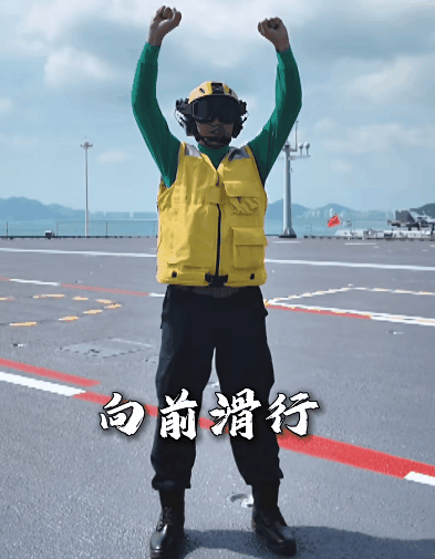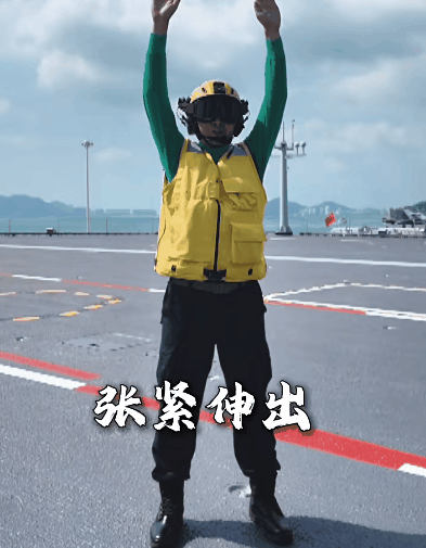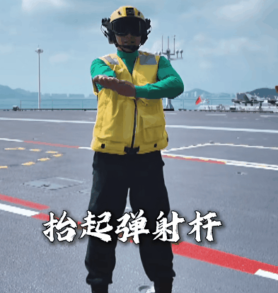 来来来,大家一起来做“航母健身操”!很飒的航母范。放下弹射杆、抬起弹射杆、刹车、向前滑行、张紧伸出、适合放飞、准备弹射! 大家每天练一练哈,说不定哪天可以露两手,吹嘘“当年老子在航母甲板上混过几年”[捂脸]!