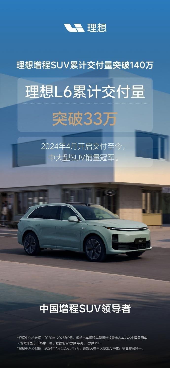 理想L6理想L7理想L8理想L9理想ONE理想增程SUV交付140万辆