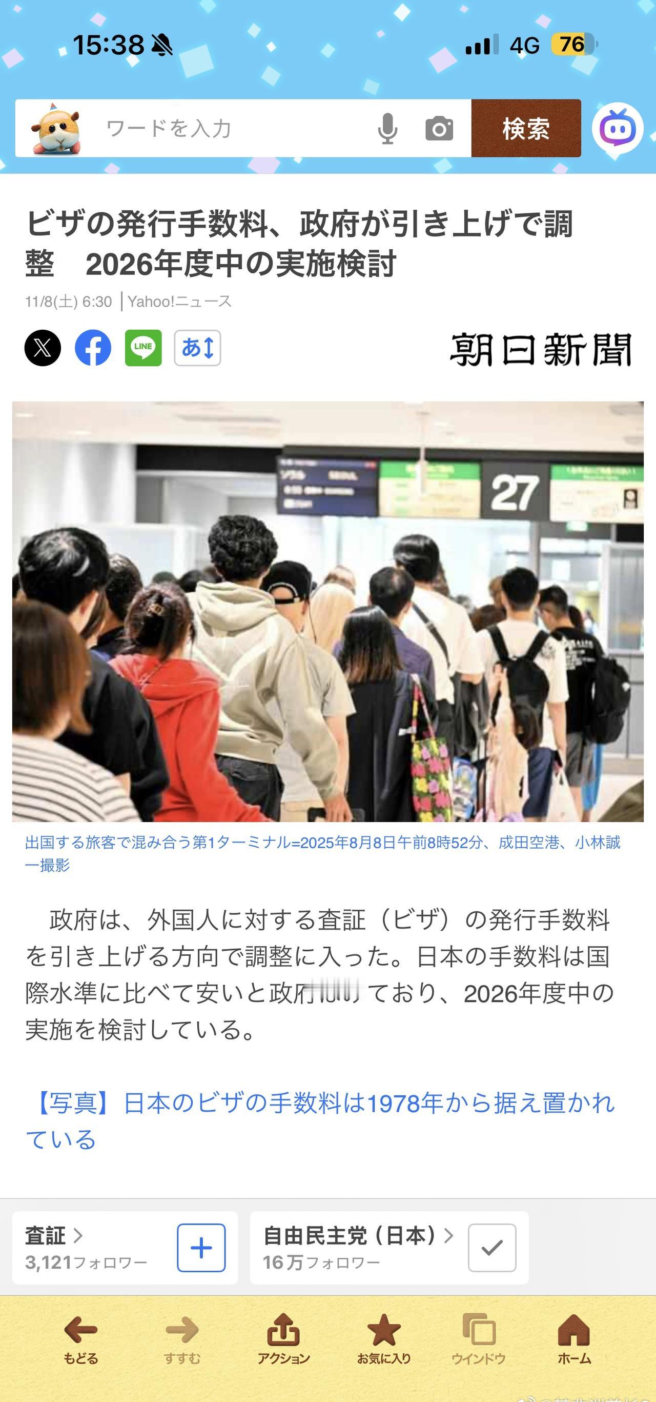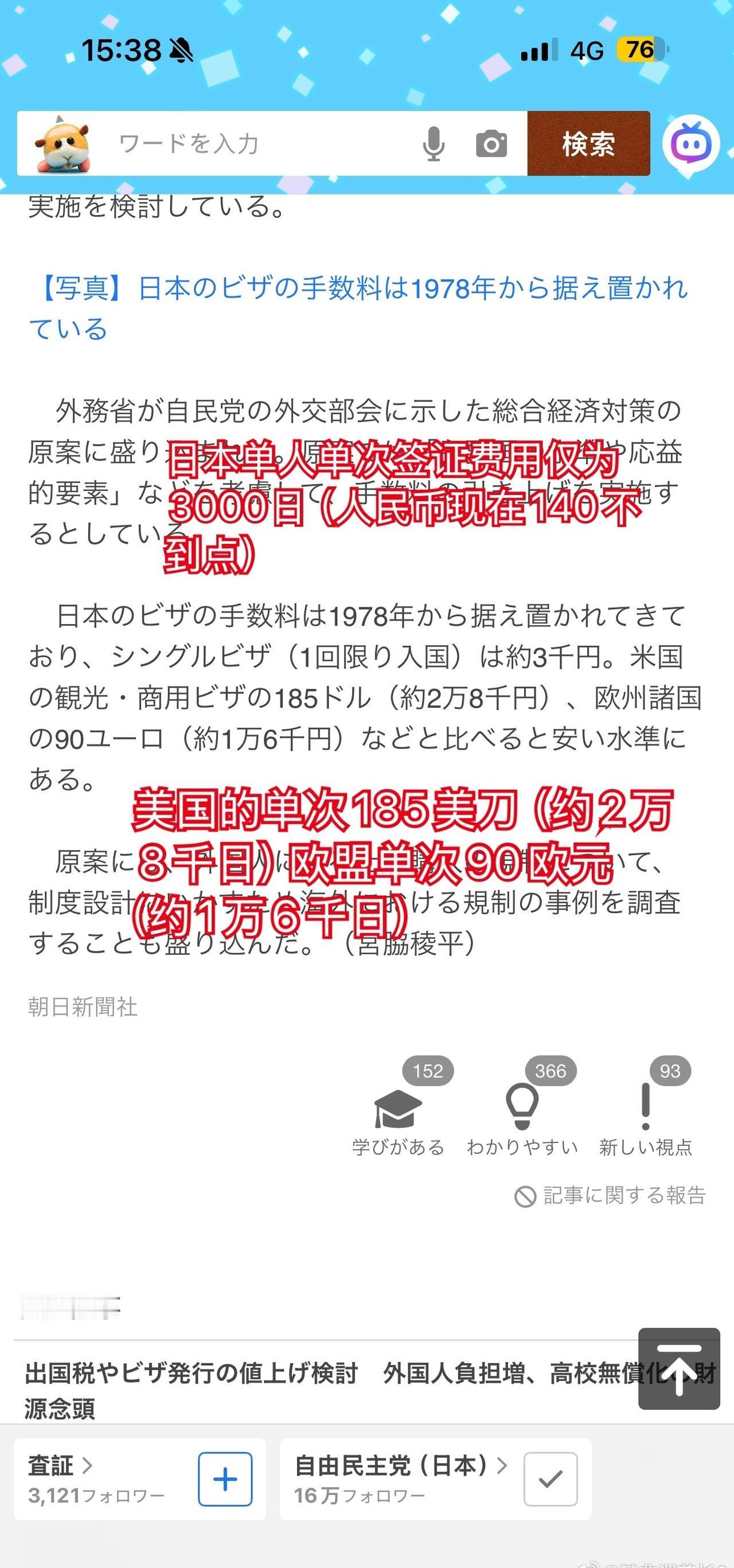 日本政府计划上调签证费用,说现在的单次3000日(按现在汇率人民币140都不到了)太便宜了,隔壁老美一次185刀(约2万8千日),欧盟90欧(约1万6千日) 日本这个签证价格1978年开始没涨过 ,说要和国际水平看齐