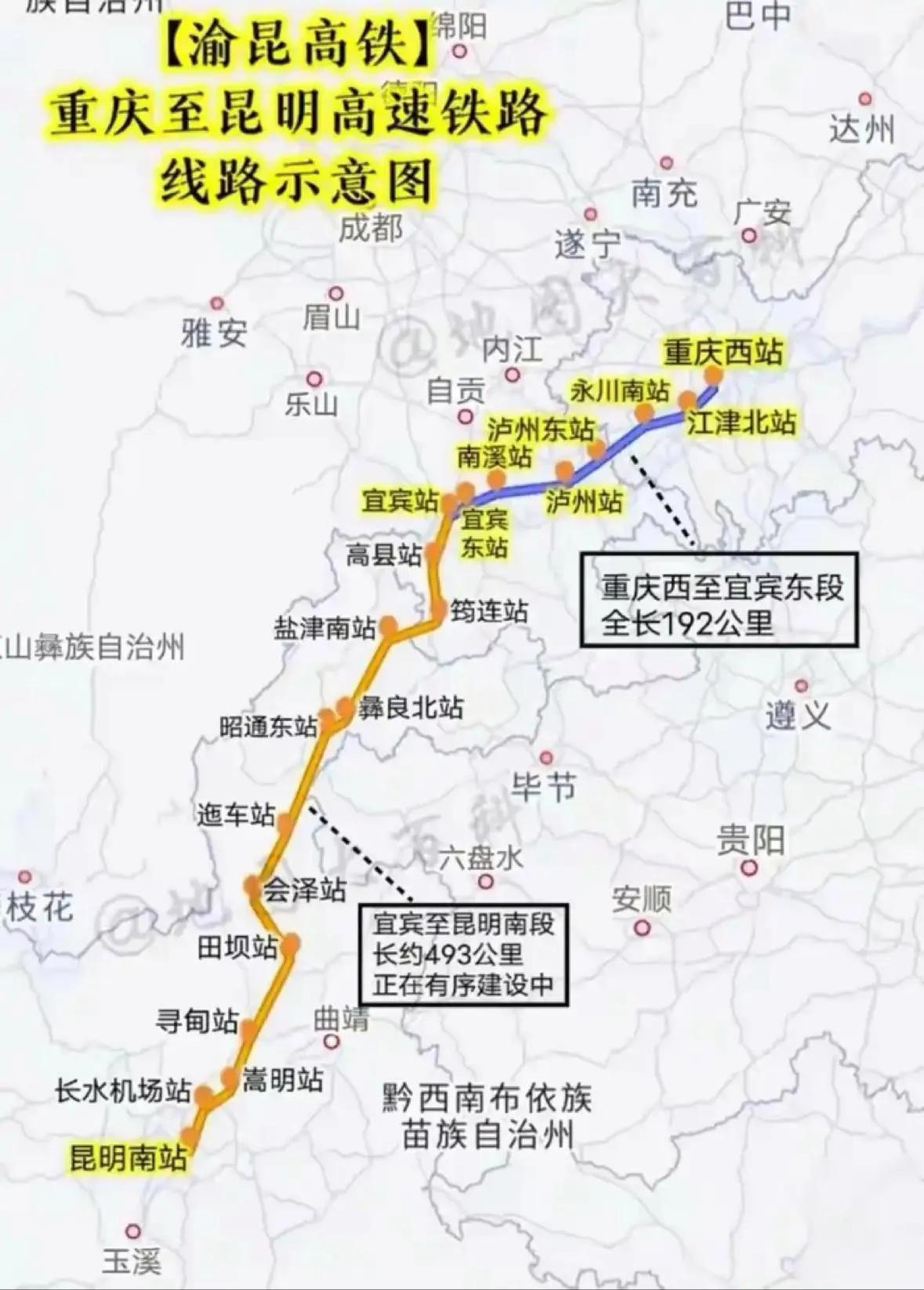 渝昆高铁通车进入倒计时! 渝昆高铁是“京昆通道”的重要组成部分。途径重庆、四川、云南,穿越四川盆地、长江上游山区和云贵高原核心区,全长698.96千米,沿途设21座车站,设计速度350千米/小时! 其中,渝宜段于2020年12月开工,2024年2月全线正线铺轨完成,于今年9月底开通运营,自重庆西站引出,经江津北、永川南、泸州东、泸州、南溪到达宜宾东,开通后重庆西至宜宾站通勤时间不到1小时! 剩余路段预计2026年12月通车,届时重庆到昆明时间将从5小时缩至2小时左右。 不过,也有让人遗憾的地方。渝昆高铁经过贵州毕节威宁县却未设站,威宁县的朋友们出行还是不能享受到高铁带来的便利! 大家觉得,渝昆高铁通车后会给云贵川渝等地的朋友们的生活带来哪些变化?反正我觉得以后重庆到云南旅游避暑方便多了!渝昆高铁 高铁通车 交通便利 昆明重庆高铁 渝昆高铁渝宜段 渝滇高铁