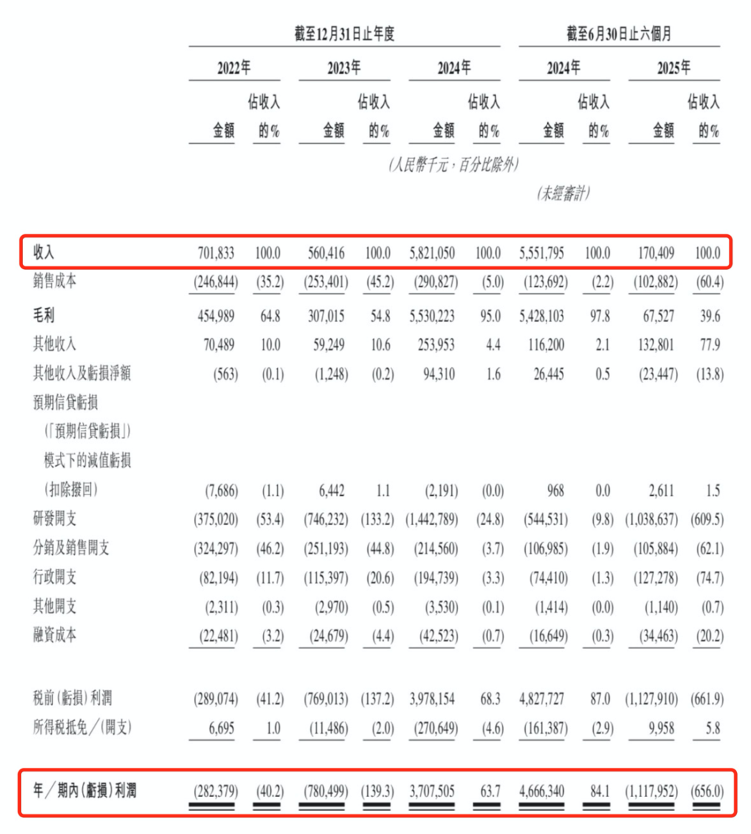 然而,这种高增长在2025年未能持续。上半年,公司营收仅为1.71亿元,同比下降96.92%;净利润亏损11.18亿元。业绩大幅下滑的主要原因是去年同期的合作款收入基数较高,以及公司持续的高研发投入。