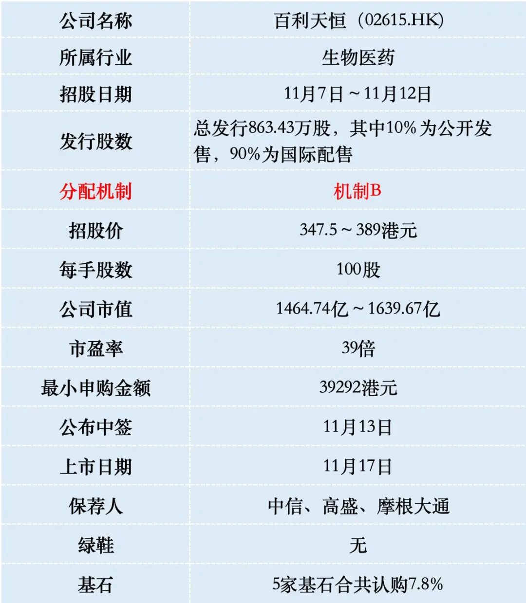 百利天恒本次IPO发行股份占全部股份比例的2.05%,以招股价下限347.5港元算,募资约30亿港元,5名基石投资者锁定2.5亿,流通盘27.5亿,对总市值1400多亿的公司来说,这个流通盘较小。