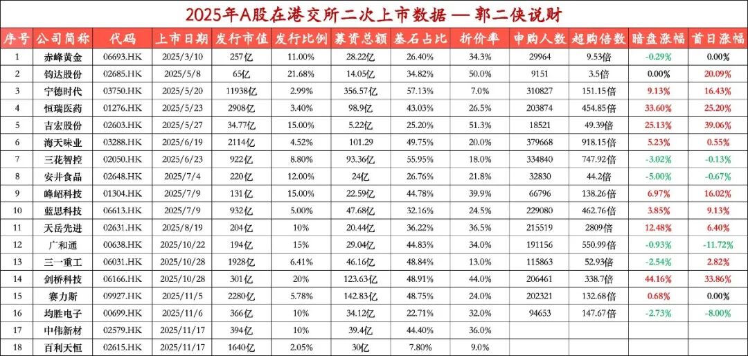 目前有83家A股公司向港交所提交了招股说明书,已有16家A股公司成功在港股二次上市,预计全年上市数量将超过30家,也就是说,接下来两个月还有一大批A+H股要来。