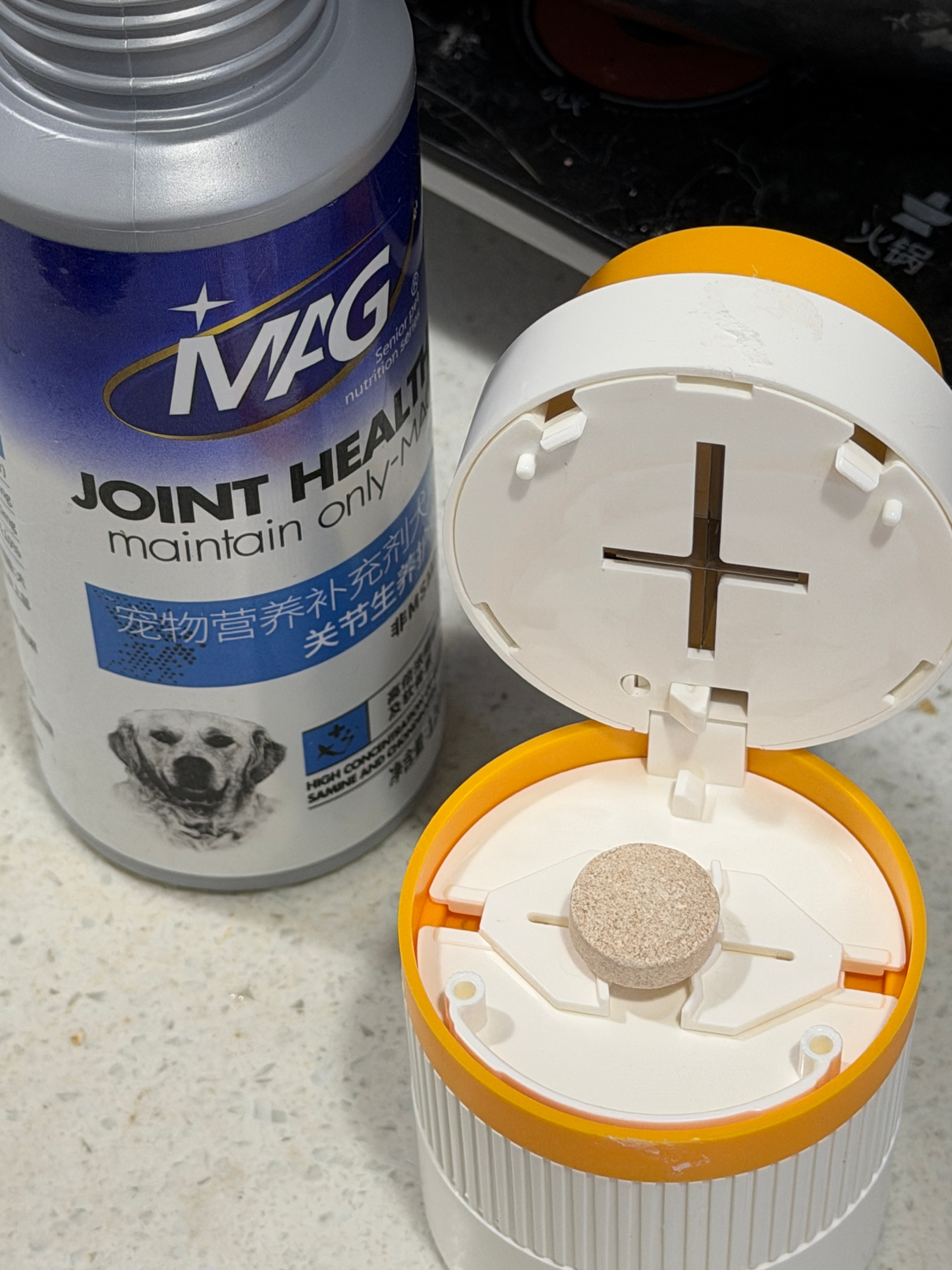 吃得没有扎扎好钙片太大了都要给她压碎了喂小狗好好长大吧长胖一点
