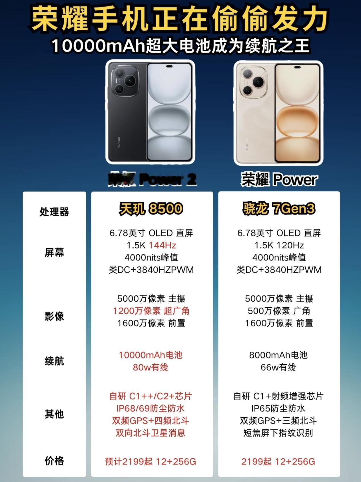 荣耀不讲武德!这是要掀桌子的节奏[捂脸]荣耀首款天玑系列中端机还真是有备而来,天玑8500+10000mAh超大电池的组合,注定让中端市场不得安宁了。 说实话,荣耀在中端市场越来越游刃有余了,堆电池直接不亦乐乎,据说这还只是其中一款上万毫安的产品,这下续航榜要被荣耀集体霸占了,这让友商情何以堪?[泪奔]